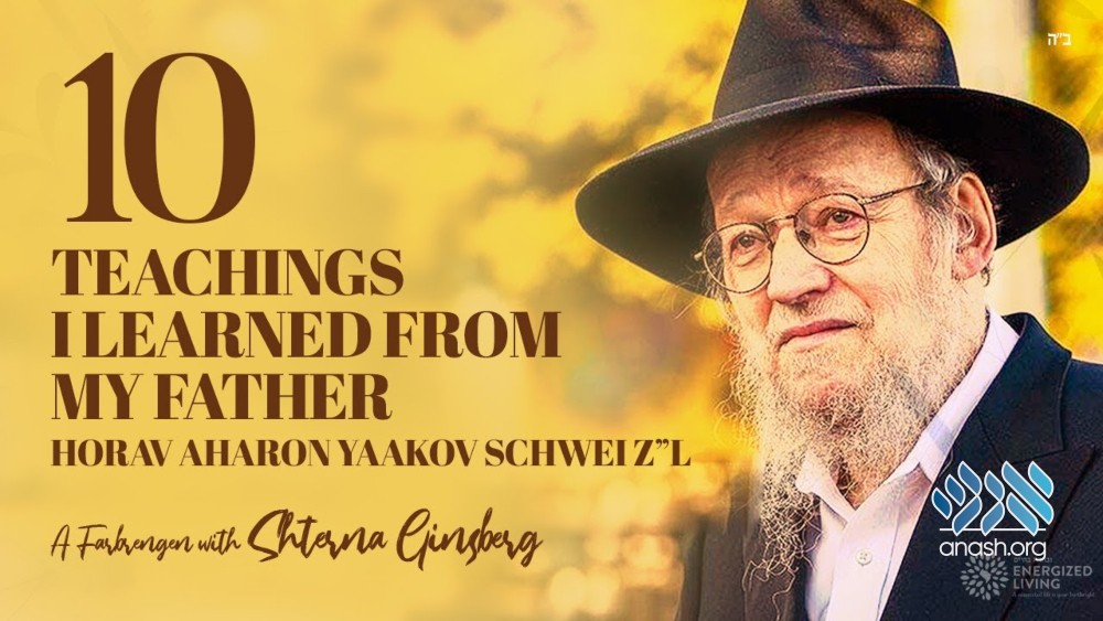 Watch: Boro Park Shlucha Mrs. Shterna Ginsberg relates ten teachings she learned from her father, the venerable rov of Crown Heights, Rabbi Aharon Yaakov Schwei a”h.