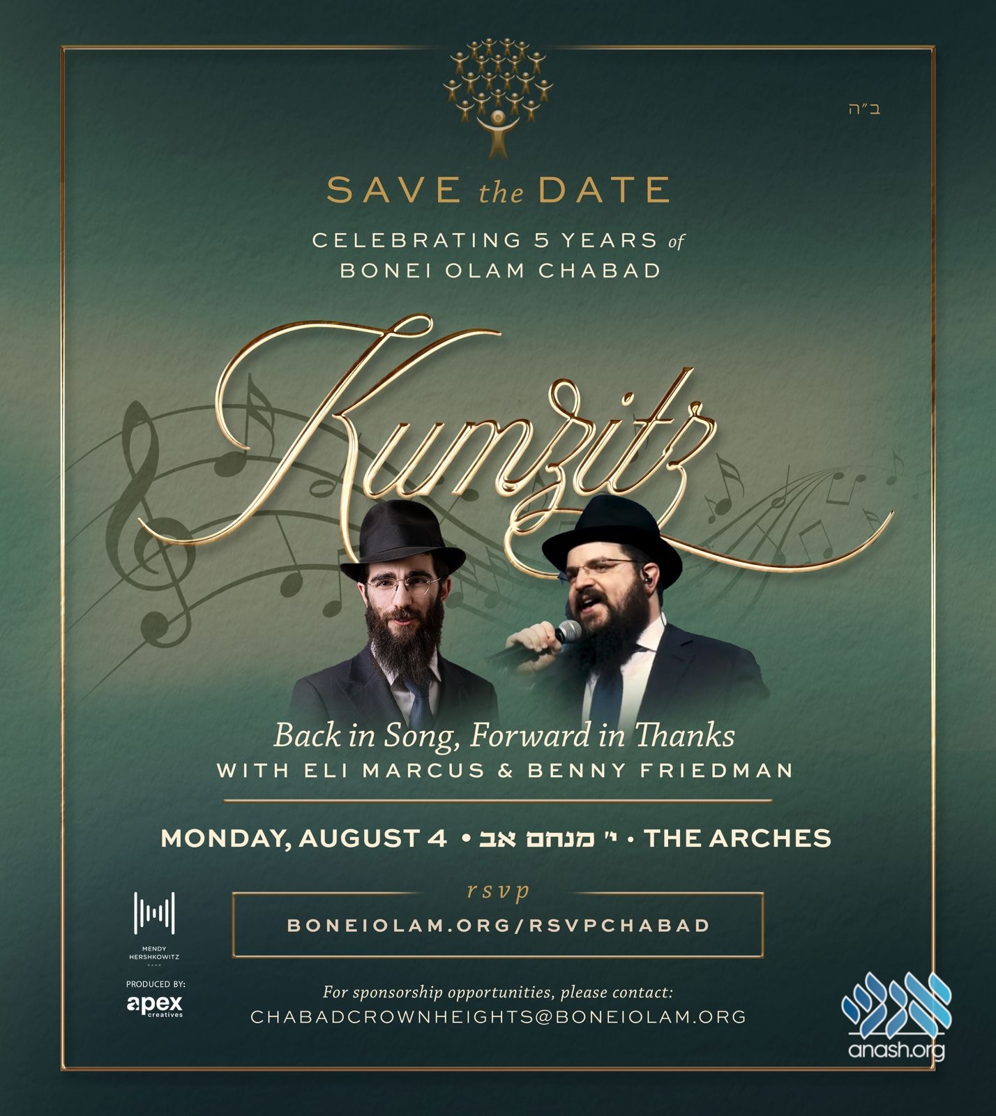In that same spirit of gratitude, we invite you to join us for the annual Men’s Kumzitz Event on Monday, August 4 at The Arches. Enjoy an evening of soulful music, premium cigars, and gourmet meats, all in support of Bonei Olam Chabad’s sacred mission.