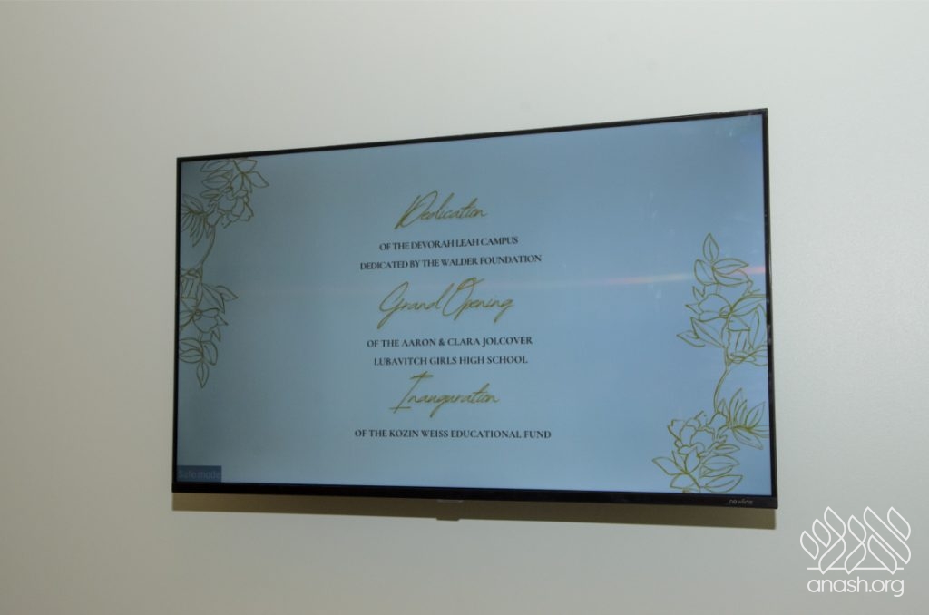 In the presence of hundreds of students, alumni, wellwishers, supporters, and Jolcovers from around the country, Mrs. Walder unveiled the Devorah Leah Campus, which includes the Aaron & Clara Jolcover Lubavitch Girls High School.