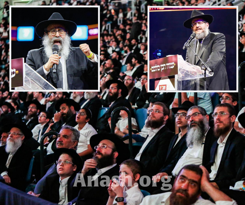 The program, which was aired globally through a live video feed, featured videos of the Rebbe, speakers, and nigunim being sung from the stage while the audience sang along.