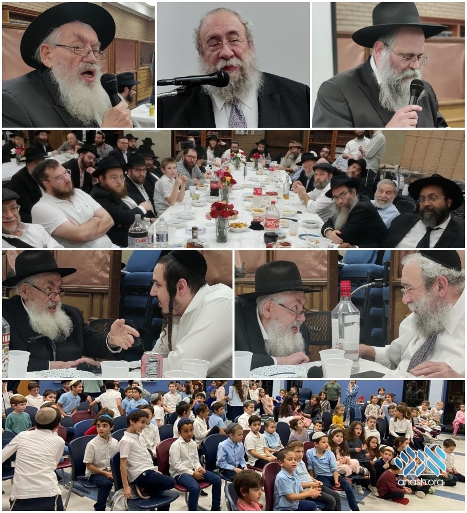 The program began with mincha, followed by a festive Yom Tov seudah. The official farbrengen was opened by Rabbi Chaim Lazaroff starting with a video of the Rebbe. A siyum and haschala on Tanya was made by R’ Nesanel Moshel, and a siyum and haschala on Hayom Yom was made by Rabbi Mendy Feigenson.