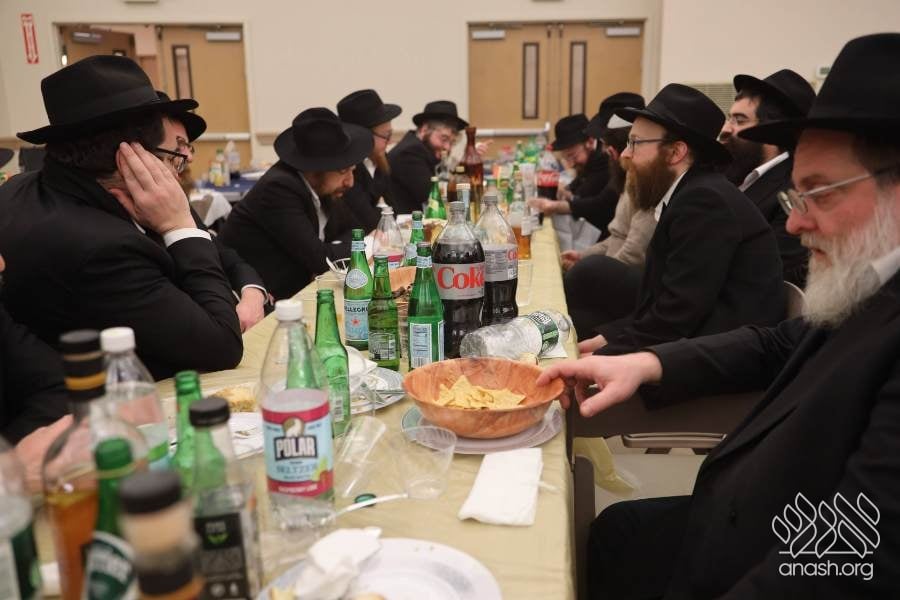 The farbrengen was a collaboration of an unusually broad coalition of Chabad houses and businesses from throughout the region, all listed as partners in the evening.