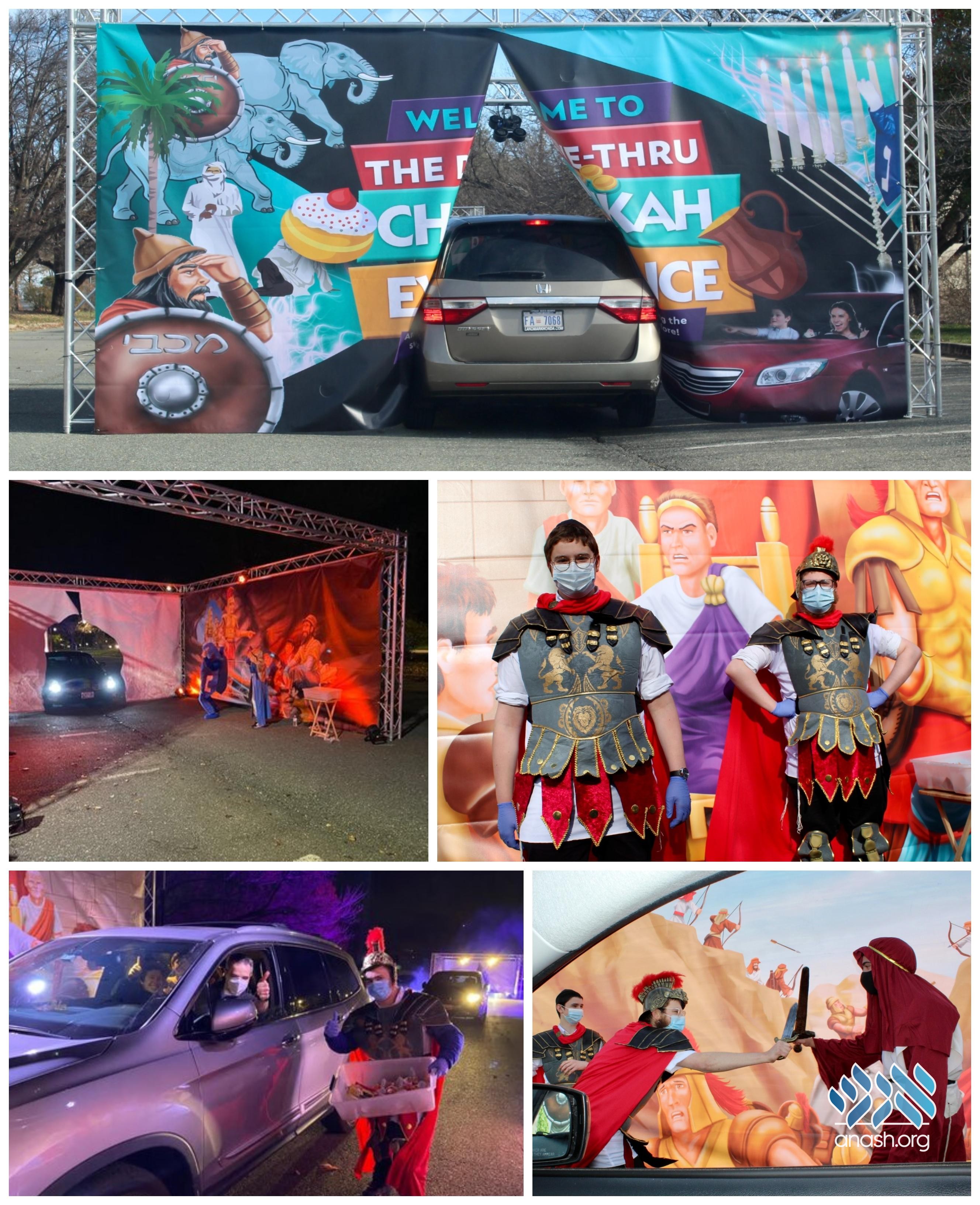 From the safety of their cars, families literally drove through the Chanukah story as multiple illustrations, props and actors brought the 2500-year-old Chanukah story to life.