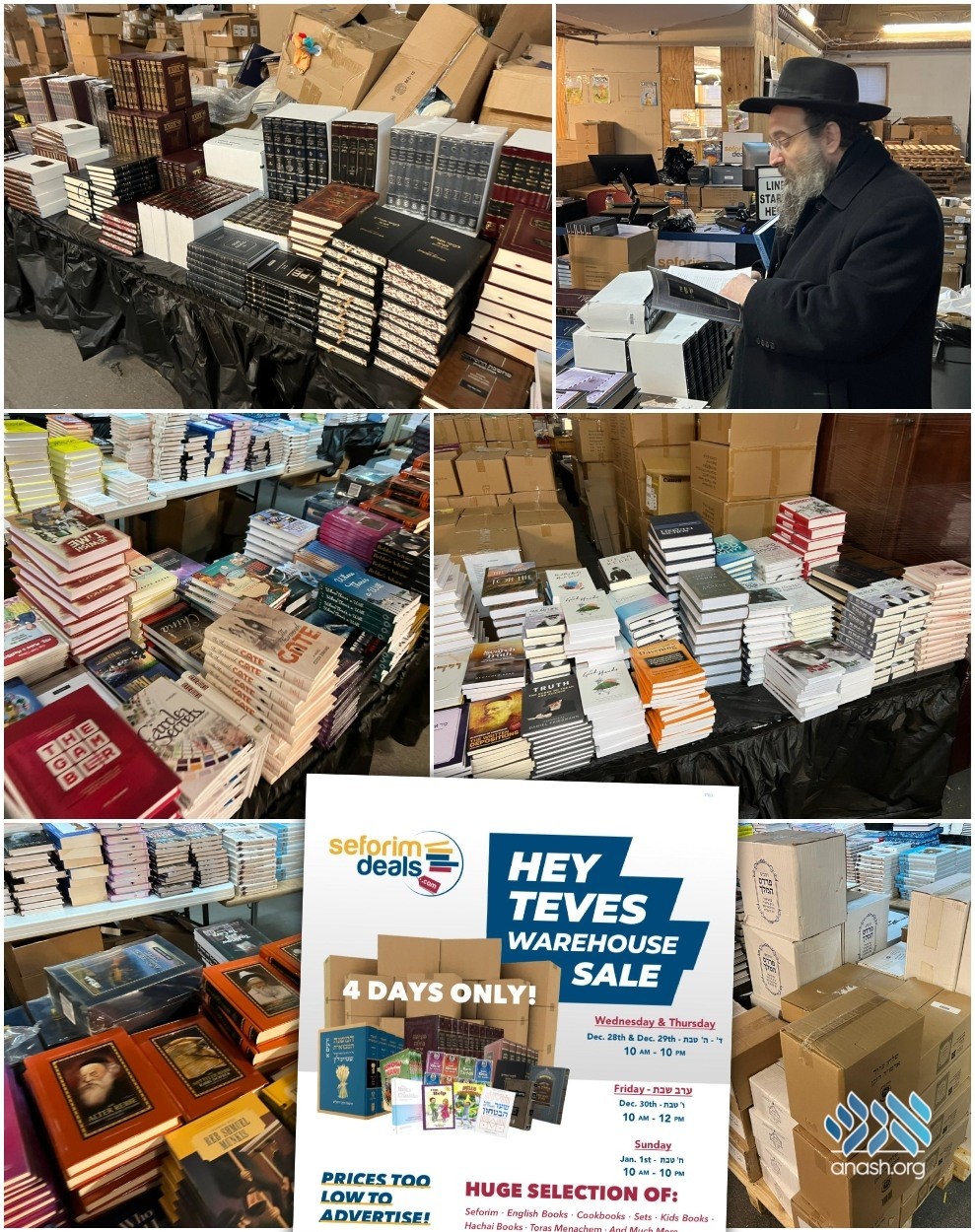 Throughout the year, SeforimDeals.com is the ideal online seforim store for Anash and Shluchim. In honor of Hey Teves, in addition to having a major online sale, they will be opening their warehouse to the public.