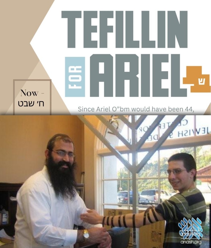 “Being that Ariel would have been 44 years old, we’d like to get 4,400+ tefillin by the yahrzeit this Ches Shevat,” the family told Ansh.org.