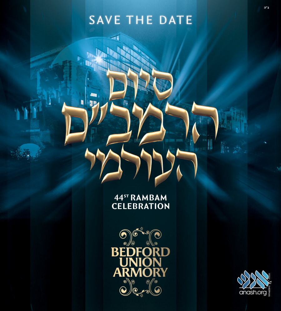 In a significant announcement for Anash and Temimim worldwide, the International Rambam Celebration Committee has released for publication that the 44th completion of the daily Rambam study cycle will be celebrated at the historic Bedford Union Armory – Crown Heights, Brooklyn, on Sunday, 2 Adar 5785 (March 2, 2025).