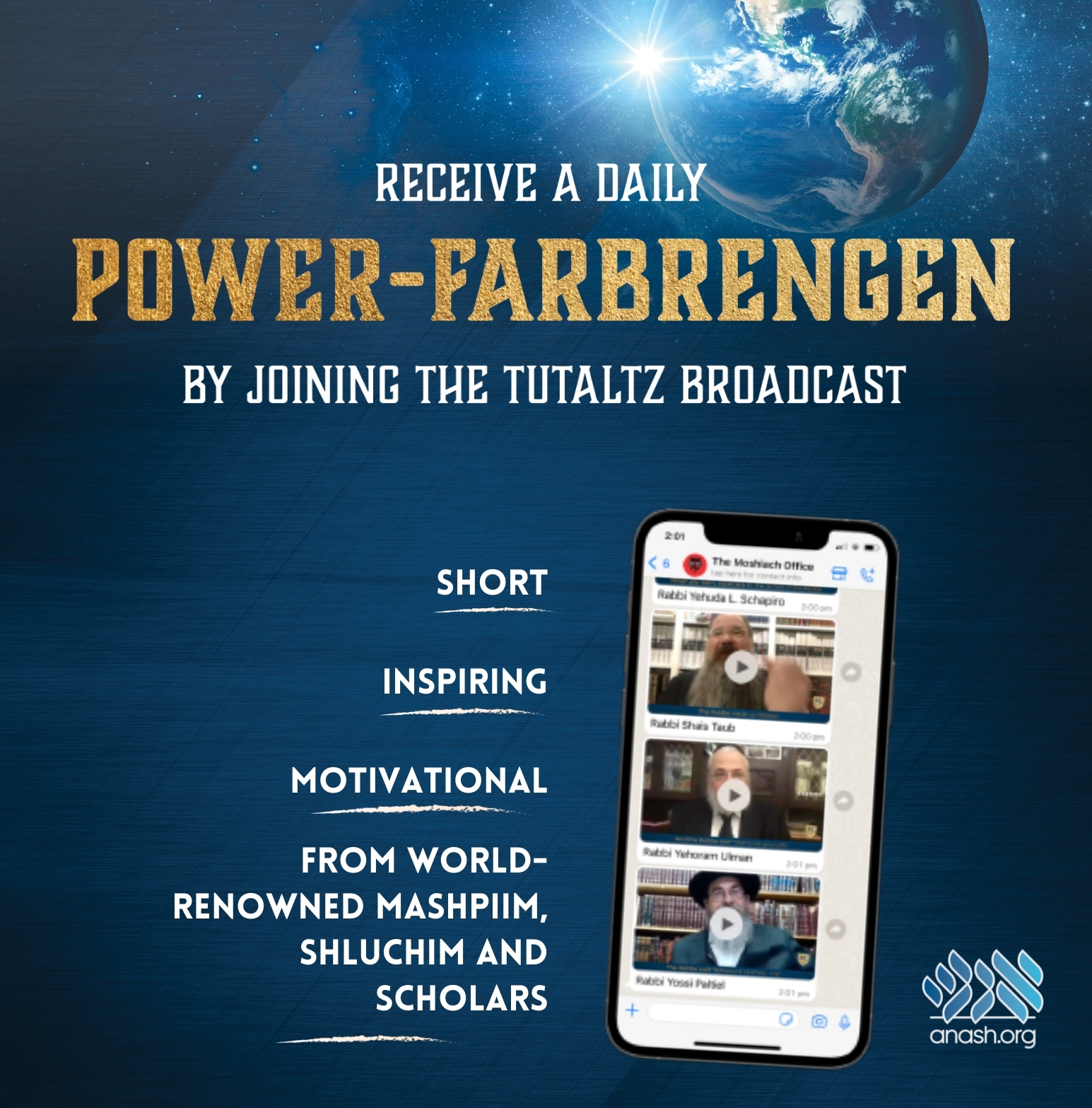 That’s why the new daily Power-Farbrengens released by Tut Altz can be just the thing you need.