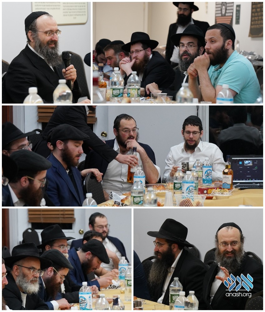 Leading the farbrengen was Harav Yosef Braun of the Crown Heights Beis Din. Rabbi Braun focused on the theme of chinuch, specifically educating our children in modern times.