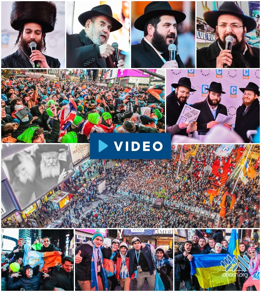 Videos of the Rebbe were played on the huge screens lining Times Square, and teens watched a special presentation encouraging them to spread Yiddishkeit ‘Whenever and Wherever’.