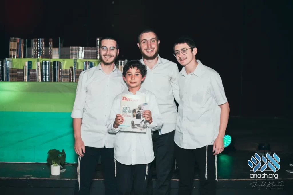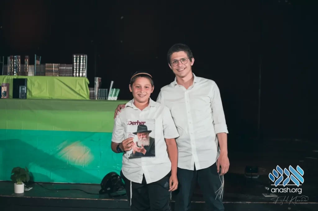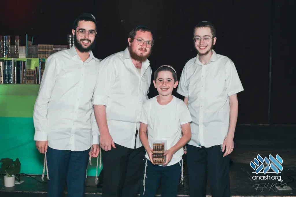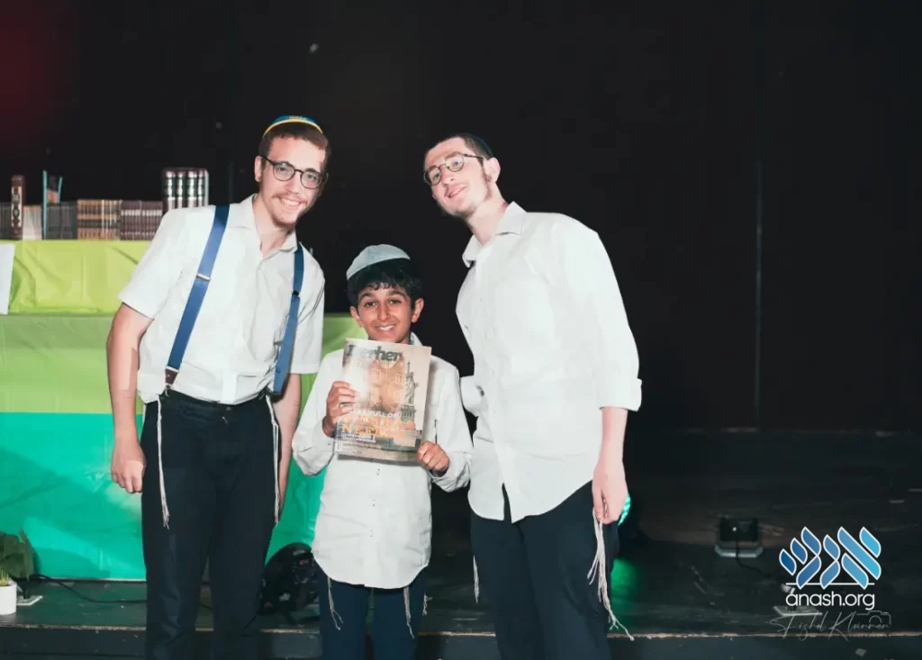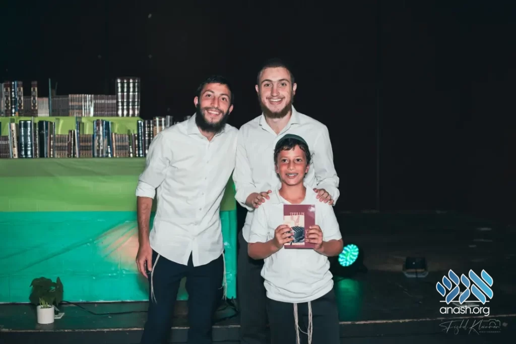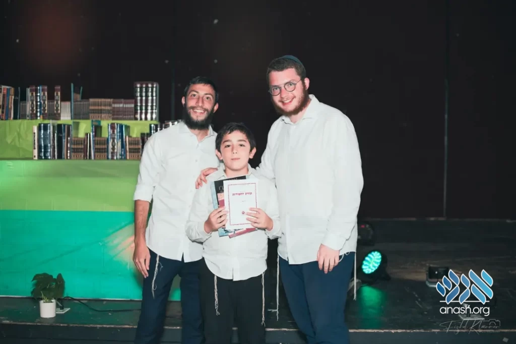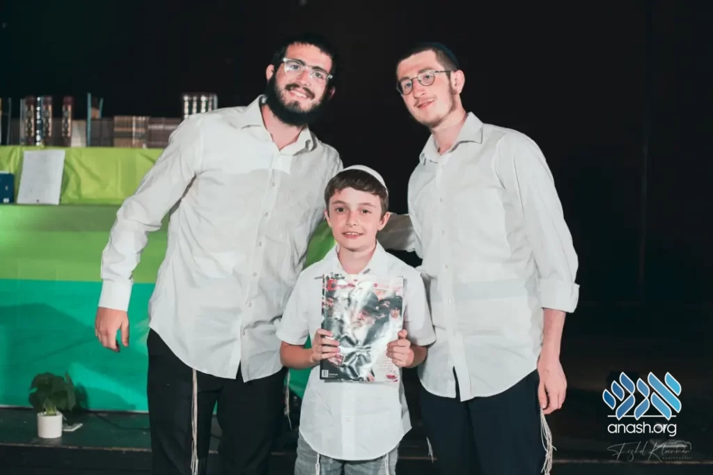 A video showing the Rebbe’s appreciation for such gifts was shown, followed by honoring the campers present in camp with the most points: 1st Place – Rafi Schrage, 2nd Place – Ari Katan, and 3rd Place – Eli Cattan.