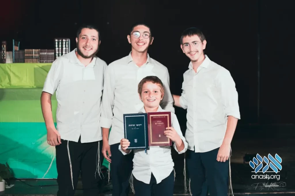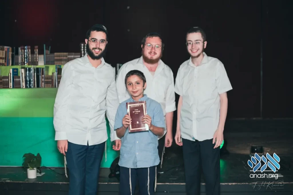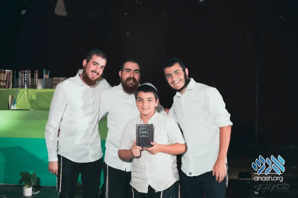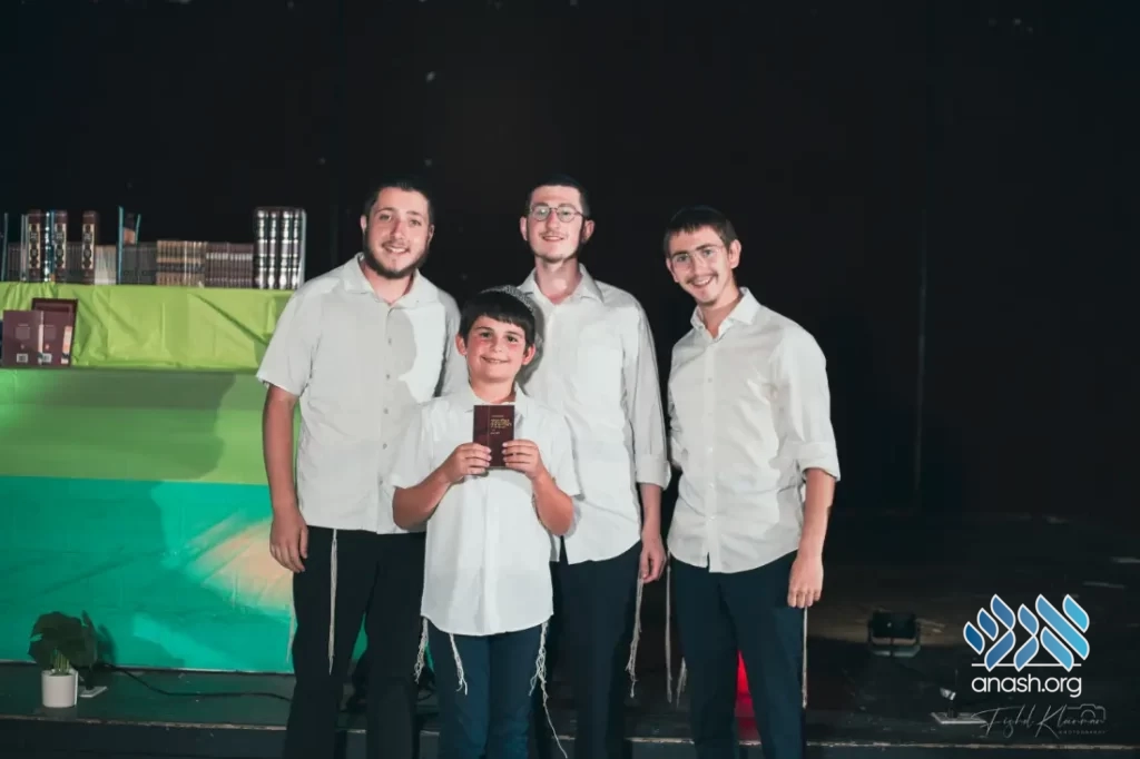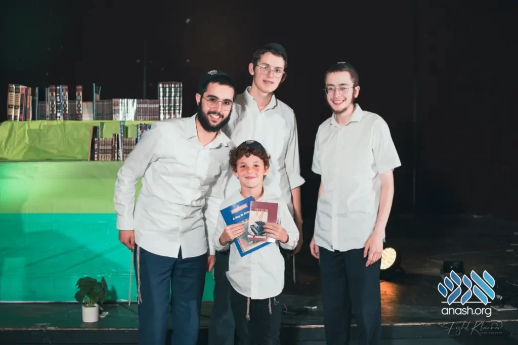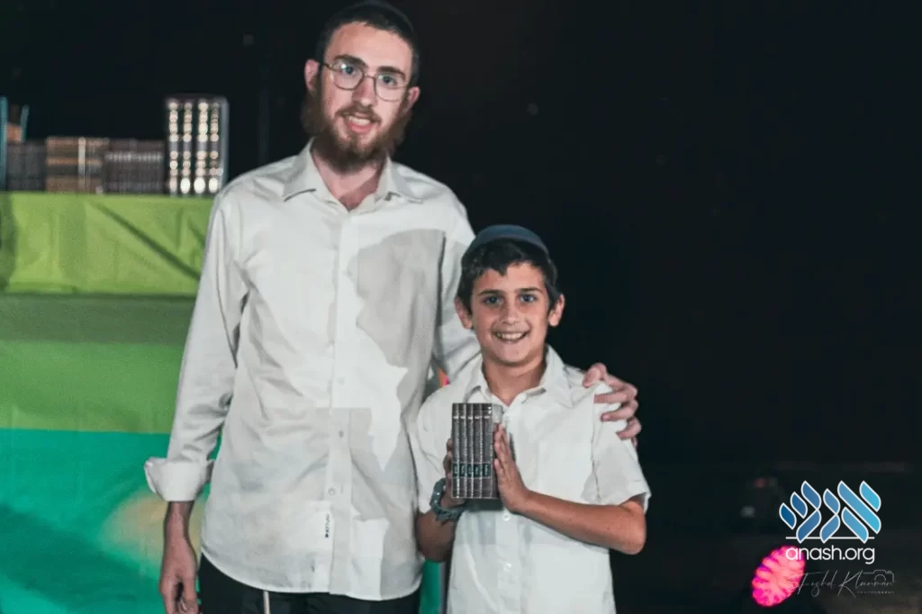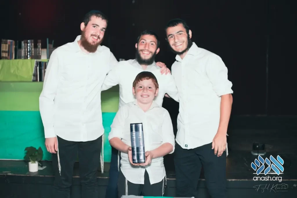 A video showing the Rebbe’s appreciation for such gifts was shown, followed by honoring the campers present in camp with the most points: 1st Place – Rafi Schrage, 2nd Place – Ari Katan, and 3rd Place – Eli Cattan.