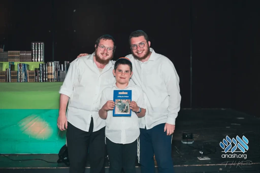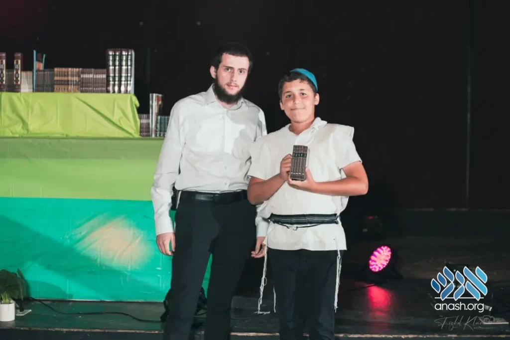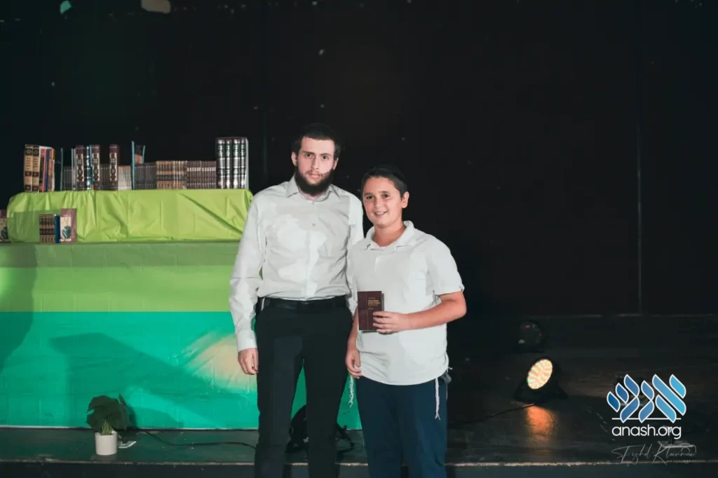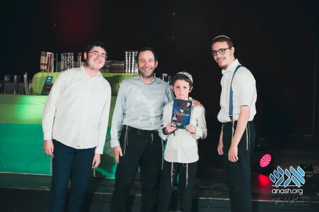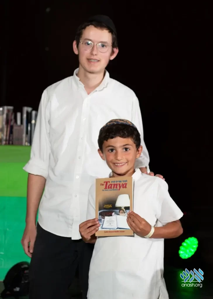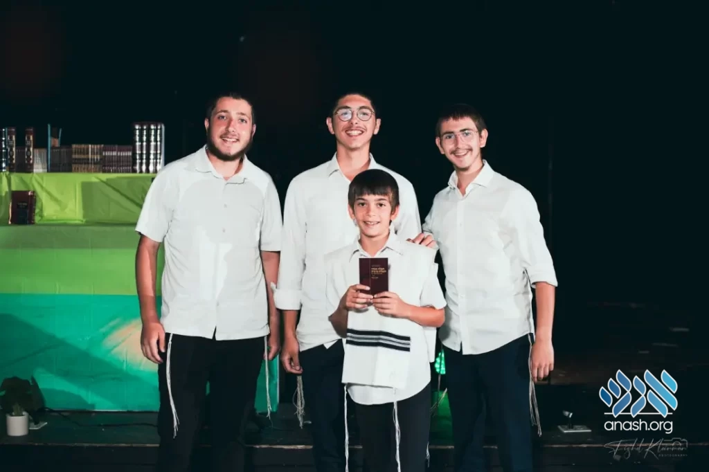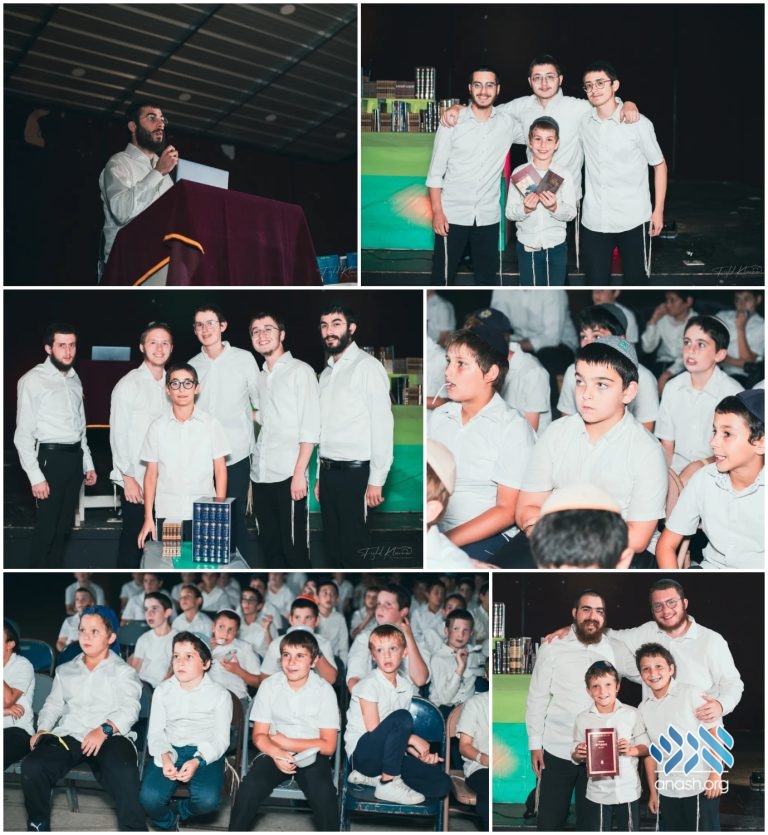 A video showing the Rebbe’s appreciation for such gifts was shown, followed by honoring the campers present in camp with the most points: 1st Place – Rafi Schrage, 2nd Place – Ari Katan, and 3rd Place – Eli Cattan.