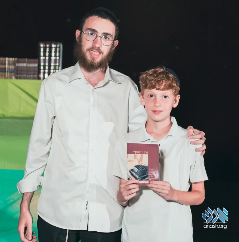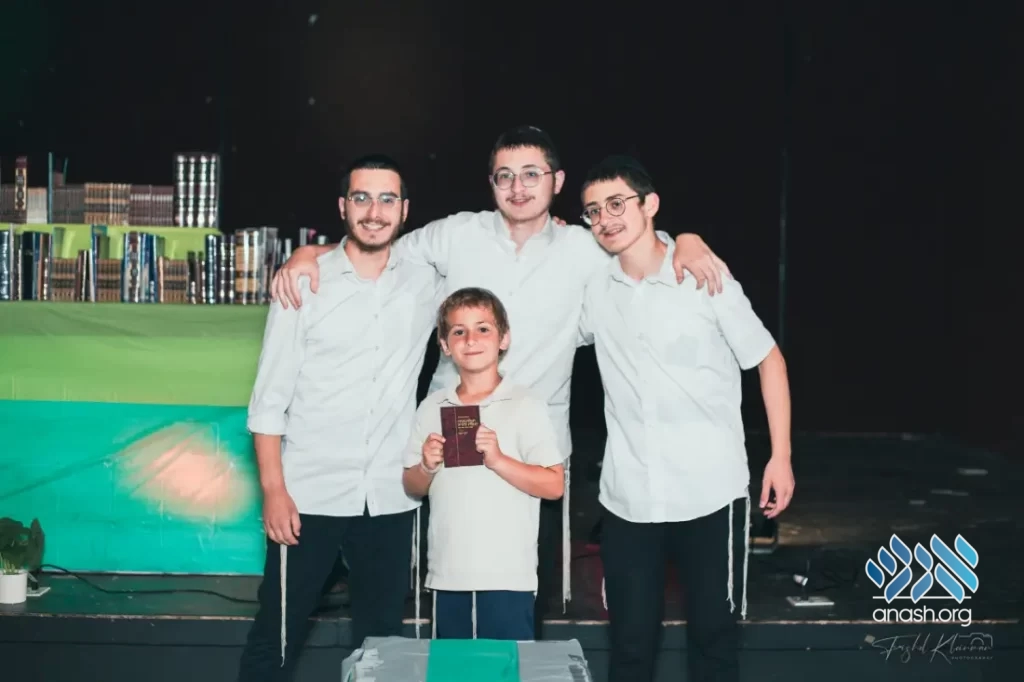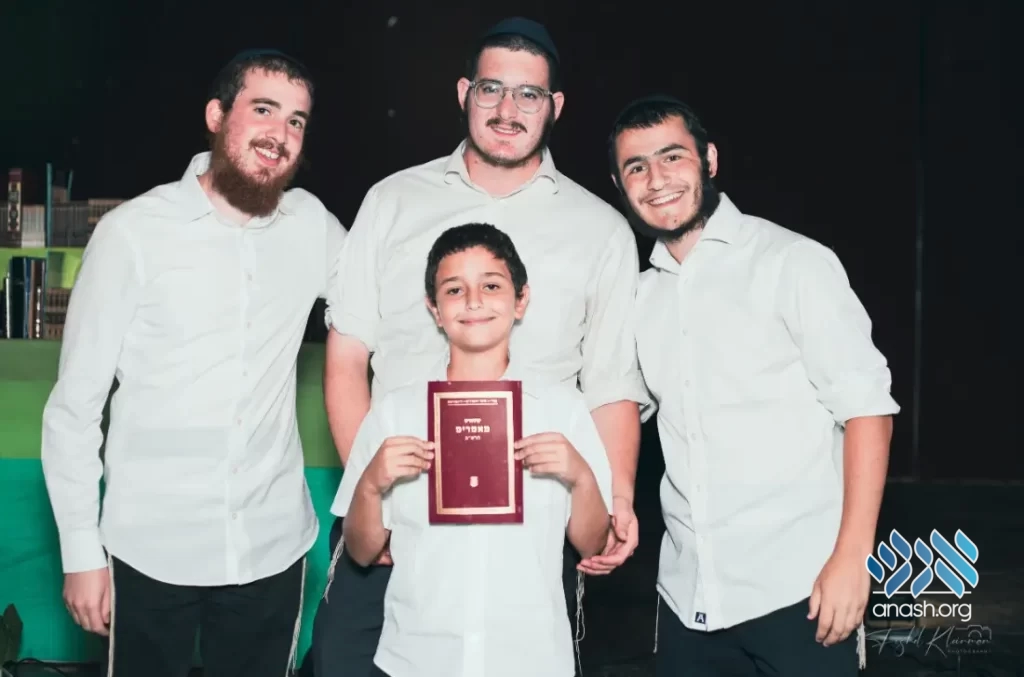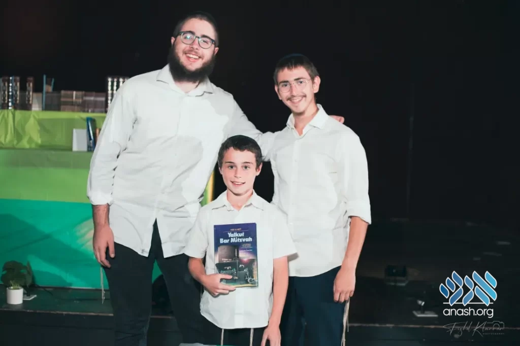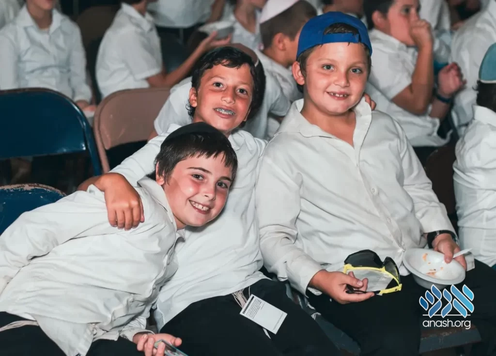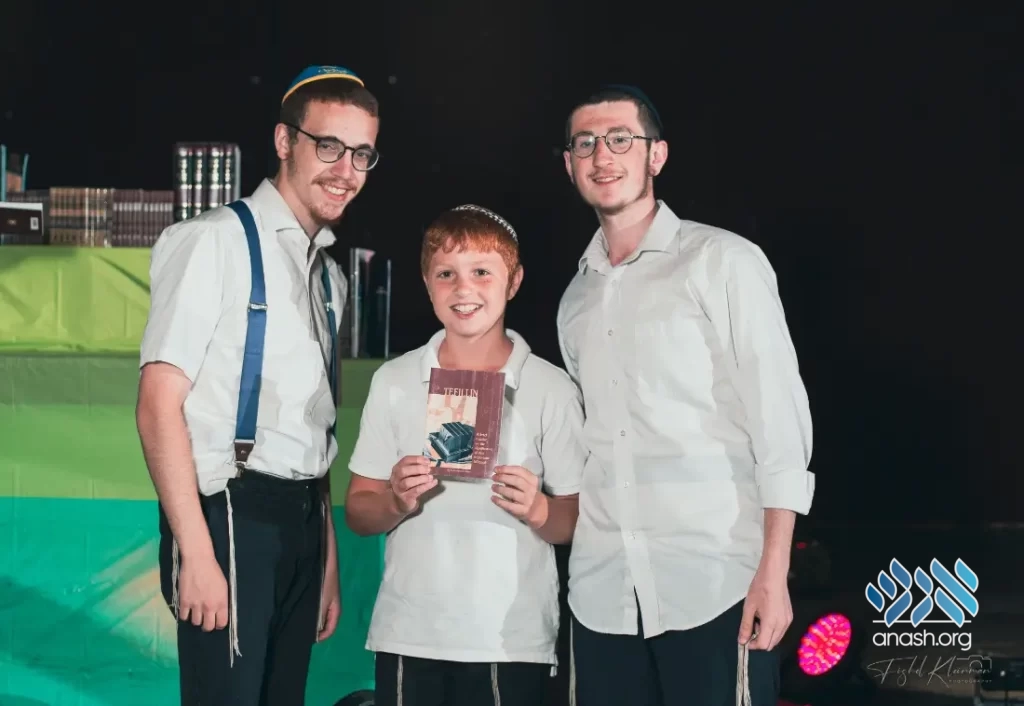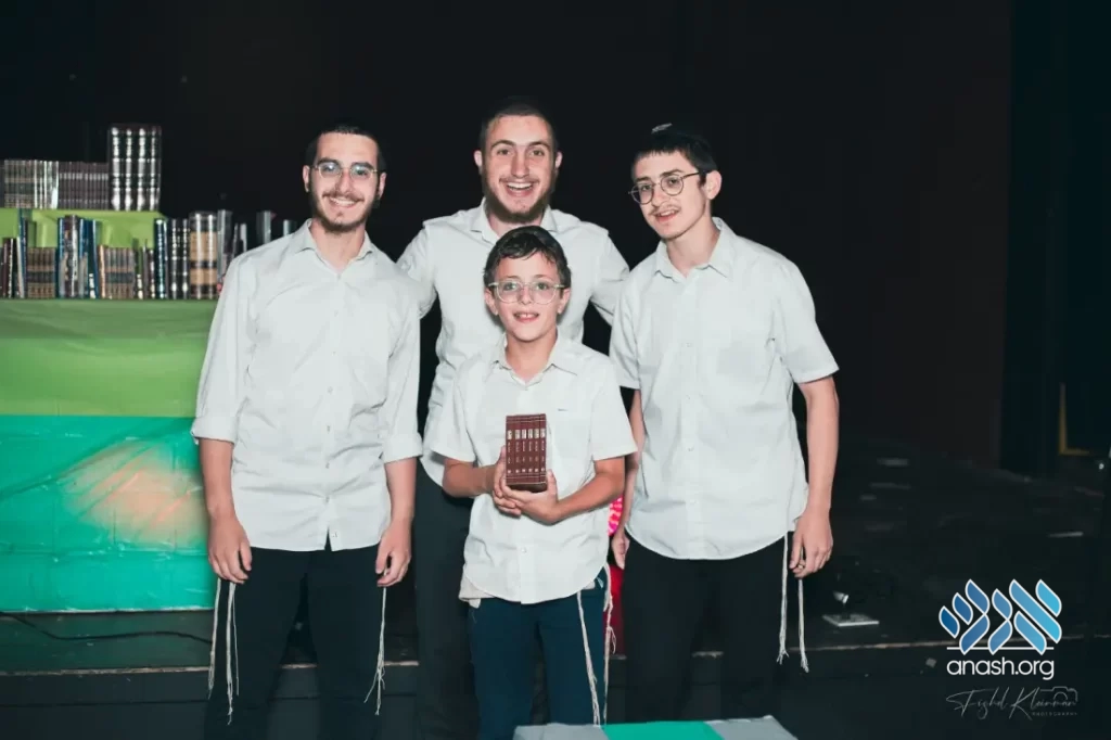 A video showing the Rebbe’s appreciation for such gifts was shown, followed by honoring the campers present in camp with the most points: 1st Place – Rafi Schrage, 2nd Place – Ari Katan, and 3rd Place – Eli Cattan.