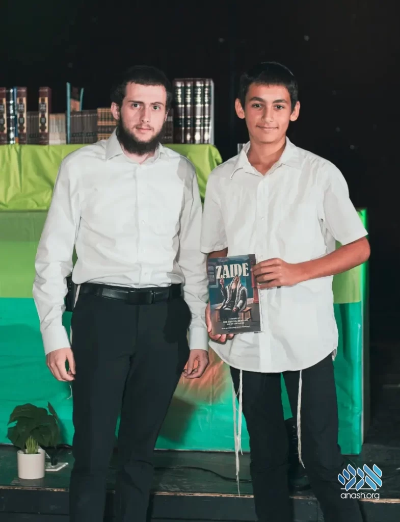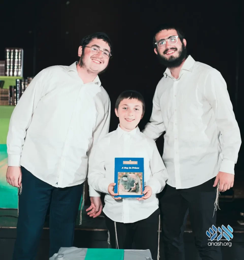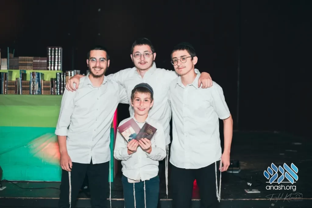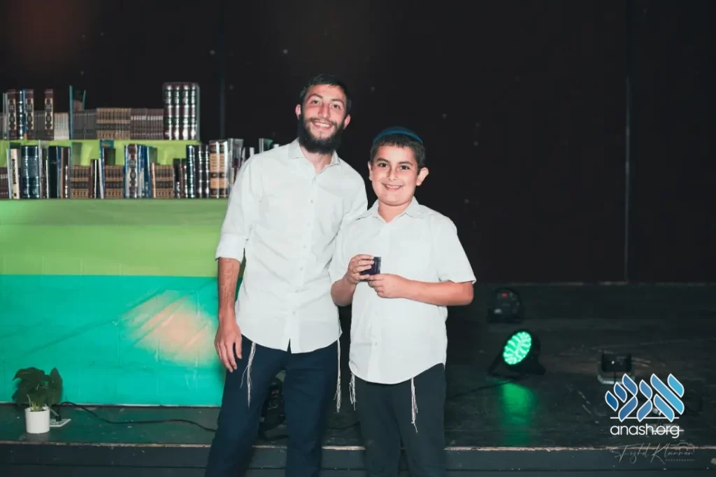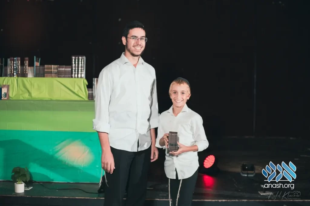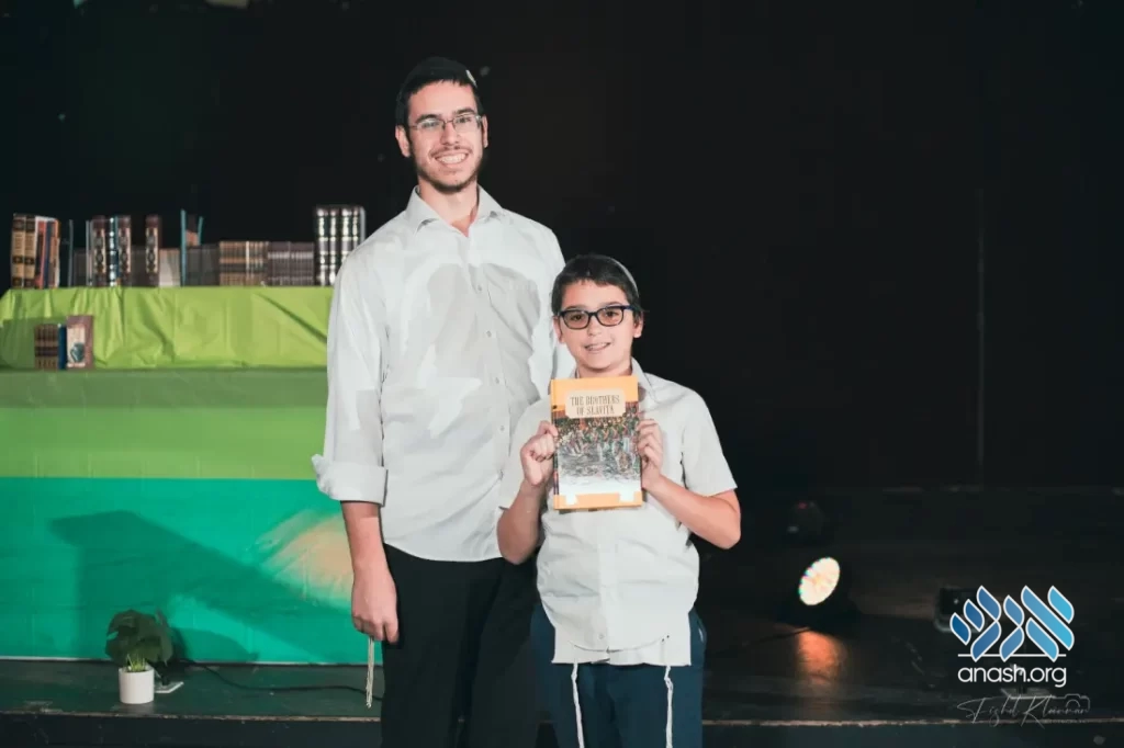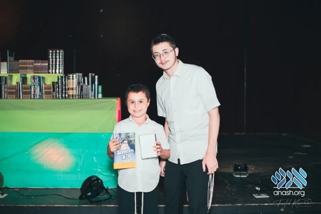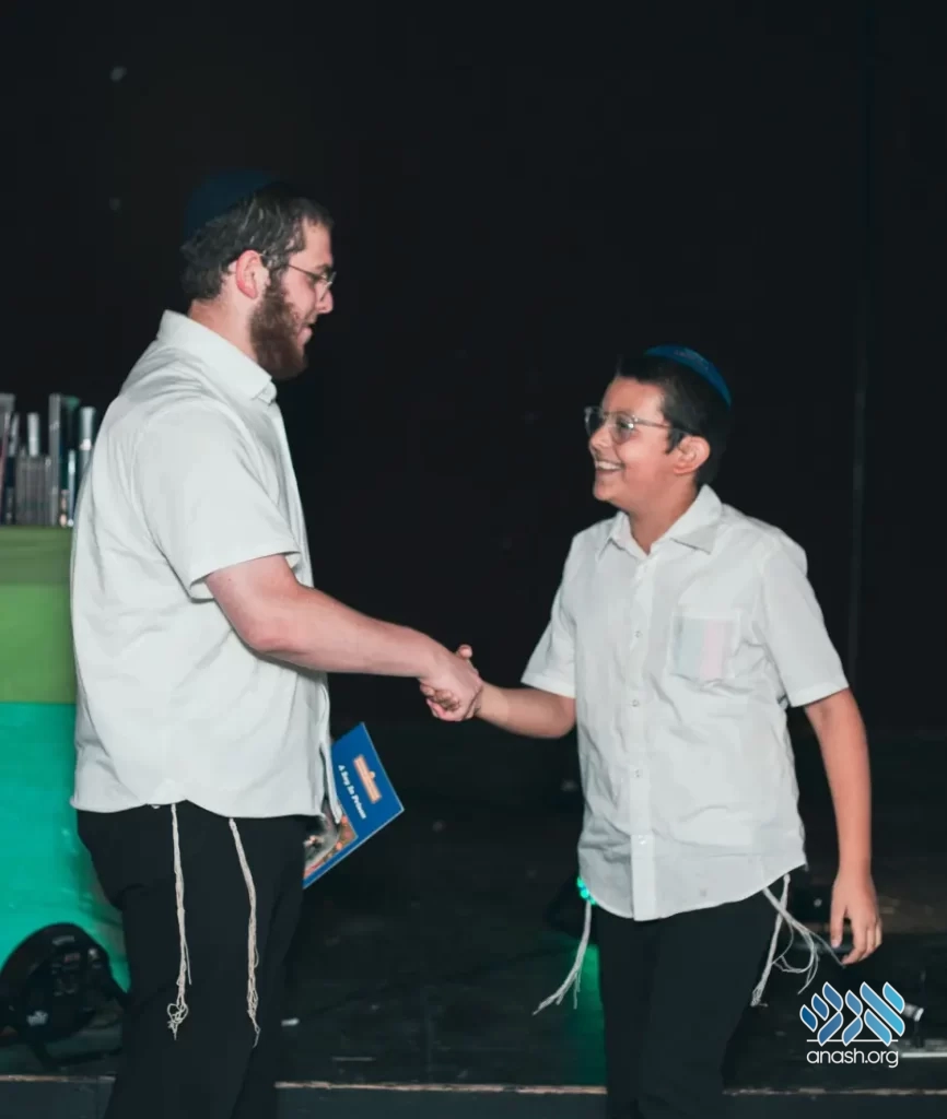 Each camper, accompanied by a multimedia presentation that included their picture and stats, was then called to the stage to receive the seforim they ordered from the camp’s seforim catalog, based on their point total.