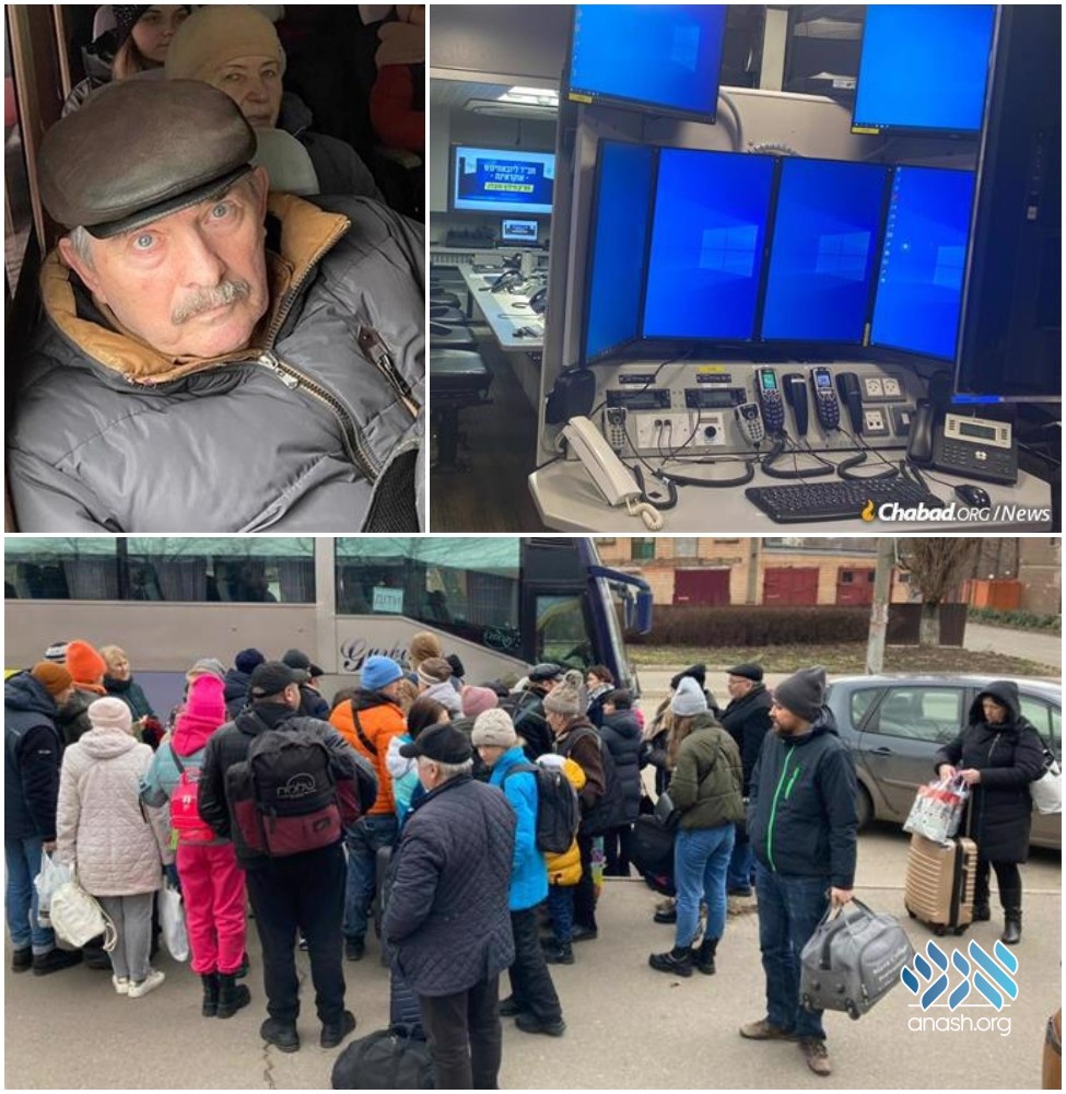 As a result, day after day, busloads of people are brought to safety by Chabad emissaries, some of whom are still in Ukraine and some of whom have stationed themselves in bordering countries or even Israel, where the command center has been set up in conjunction with Israeli aid organizations.