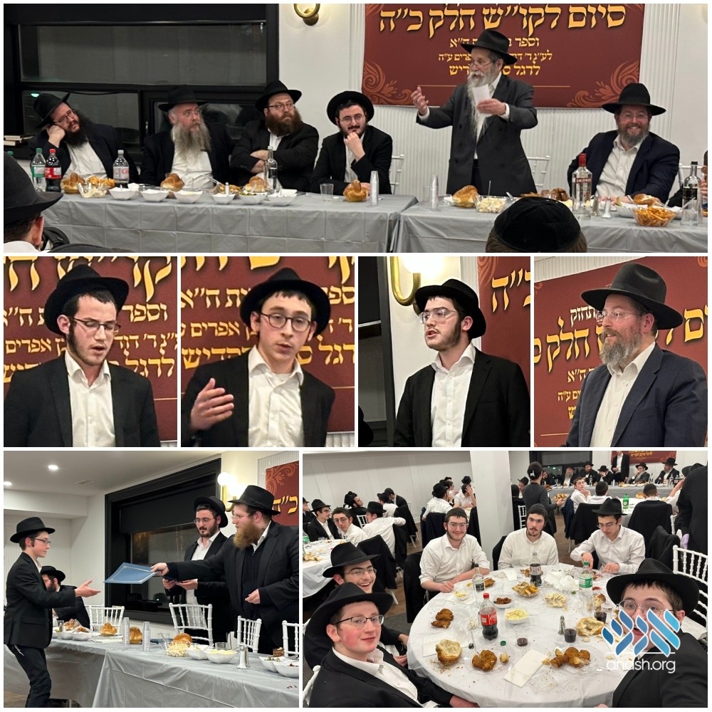 Over 55 bochurim from the Toronto Yeshiva celebrated at a grand chagigas hasiyum in honor of the completion of a full sefer of the Rebbe’s Torah.