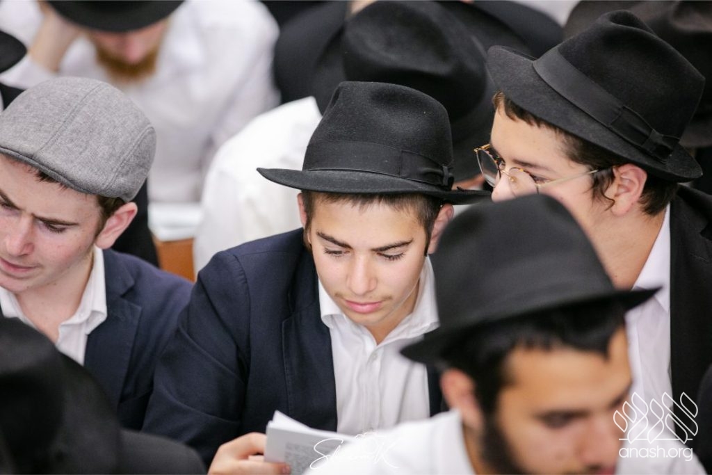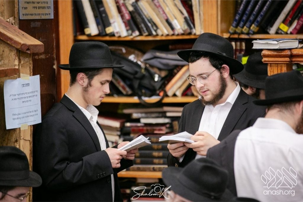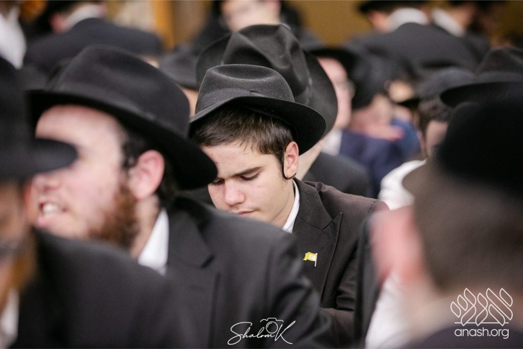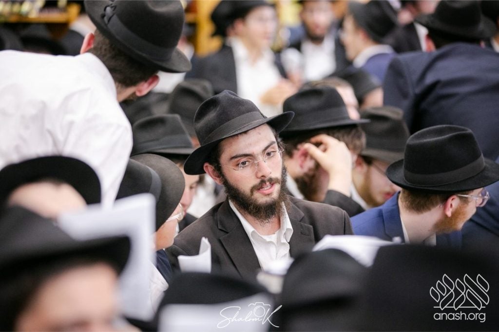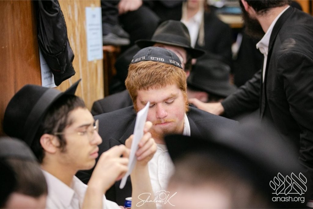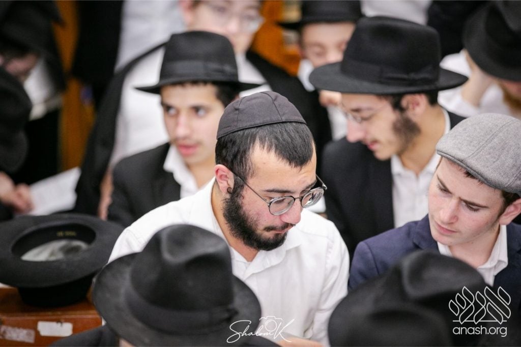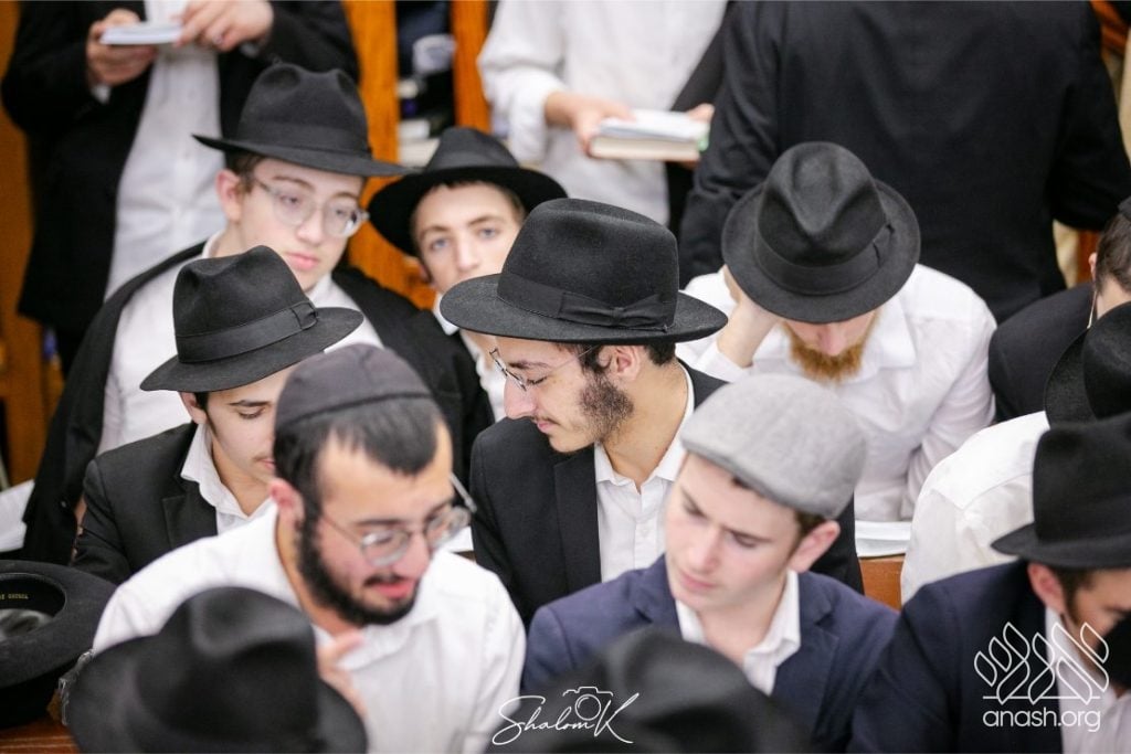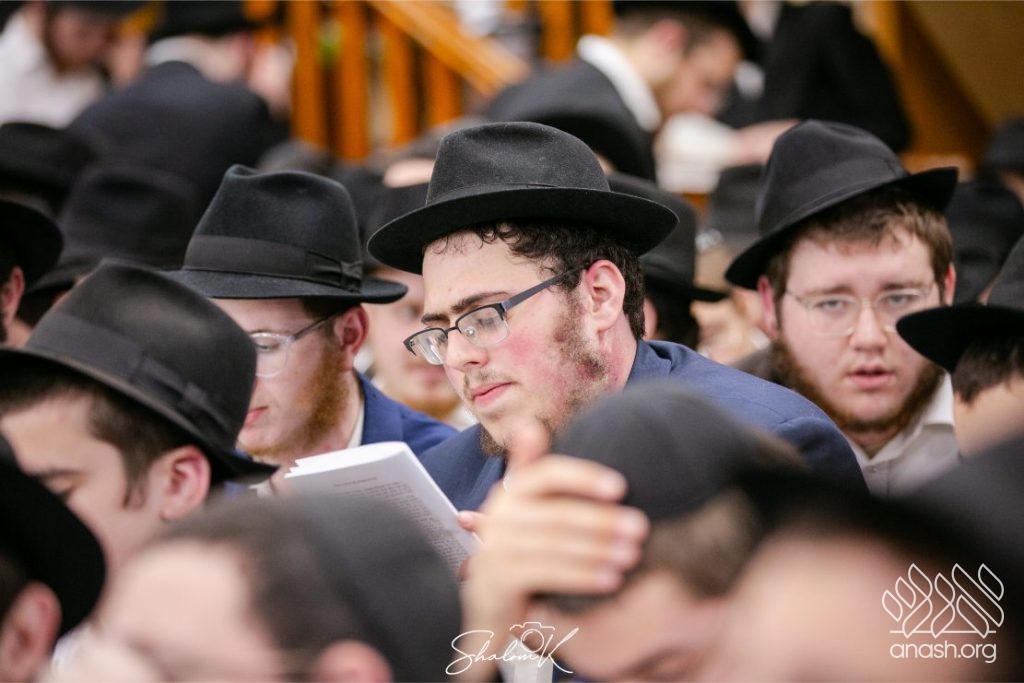 In a powerful display of achdus and preparation for Yom Kippur, over 600 English-speaking bochurim from yeshivos around the world convened tonight, Tuesday, in 770 Eastern Parkway, Beis Chayenu, to learn the Rebbe’s sichos.