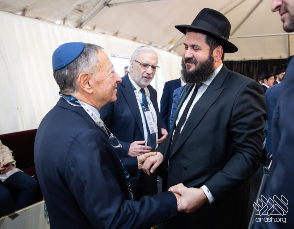 Greetings were extended by Rabbi Mendy Kotlarsky, Director of the International Conference of Shluchim, who shared an anecdote once told by his father—the late Rabbi Moshe Kotlarsky, the longtime Chairman of the annual conference. It was on Sukkot, and the Rebbe had spent seven hours on his feet. Yet when it was done, he turned to Rabbi Kotlarsky and inquired about the health of his father, who had recently suffered a heart attack.