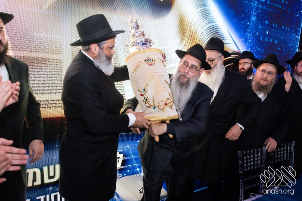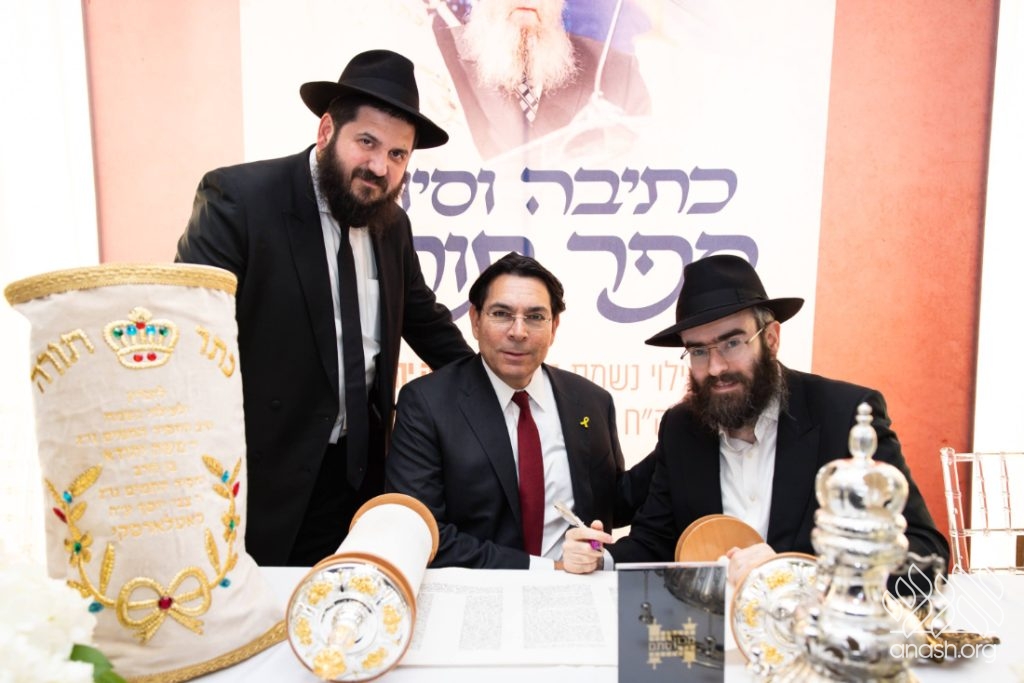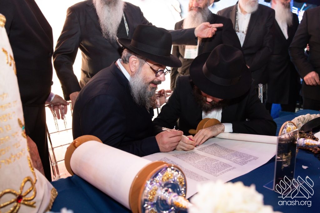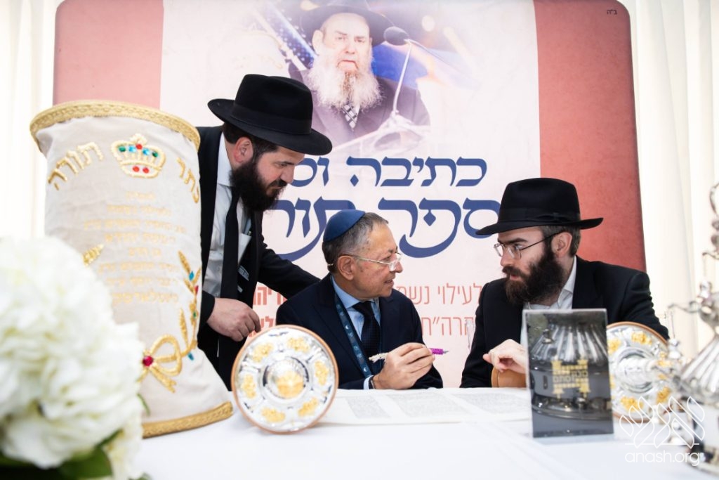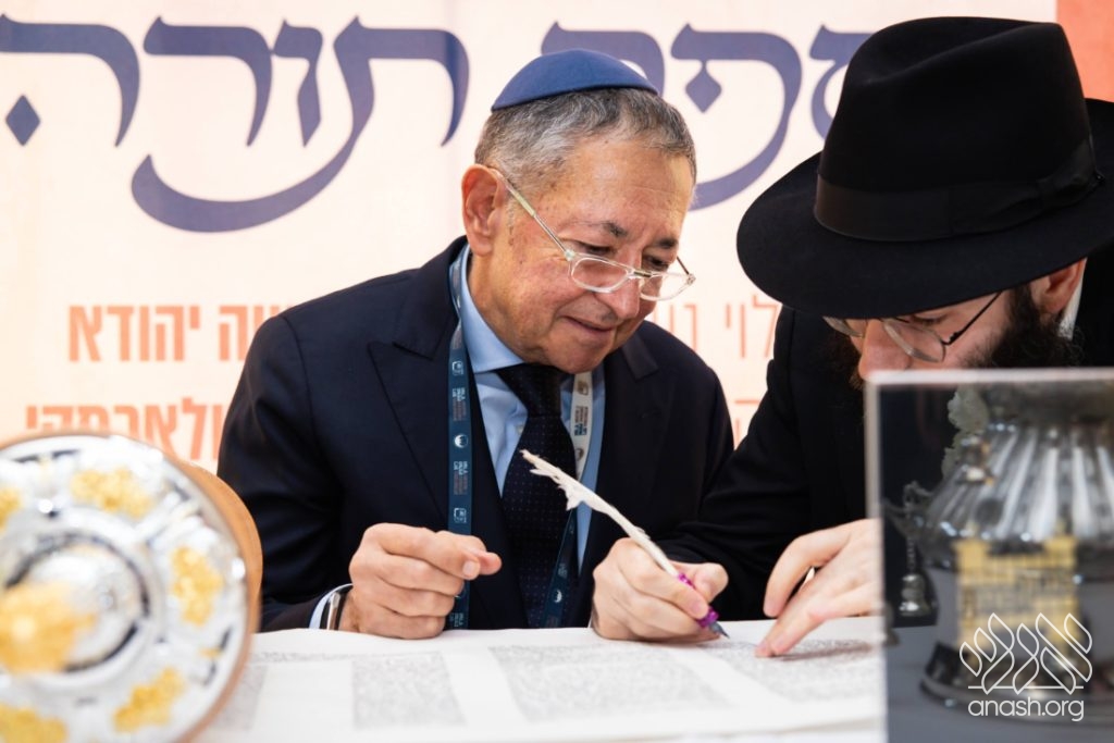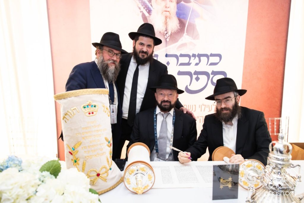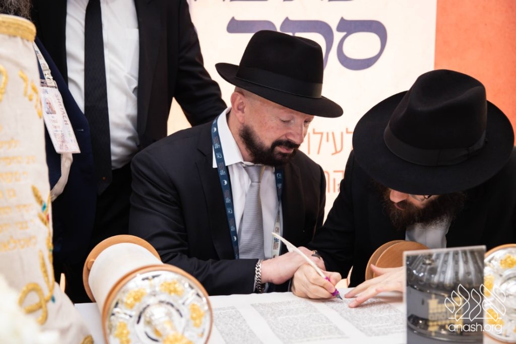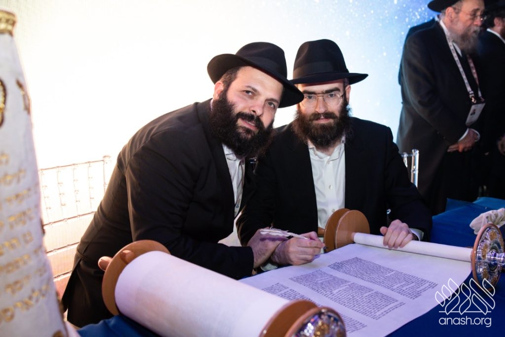 In a particularly moving moment, a Torah scroll, dedicated to the memory of Rabbi Moshe Kotlarsky, was completed by the scribe, assisted by Mr. George Rohr.