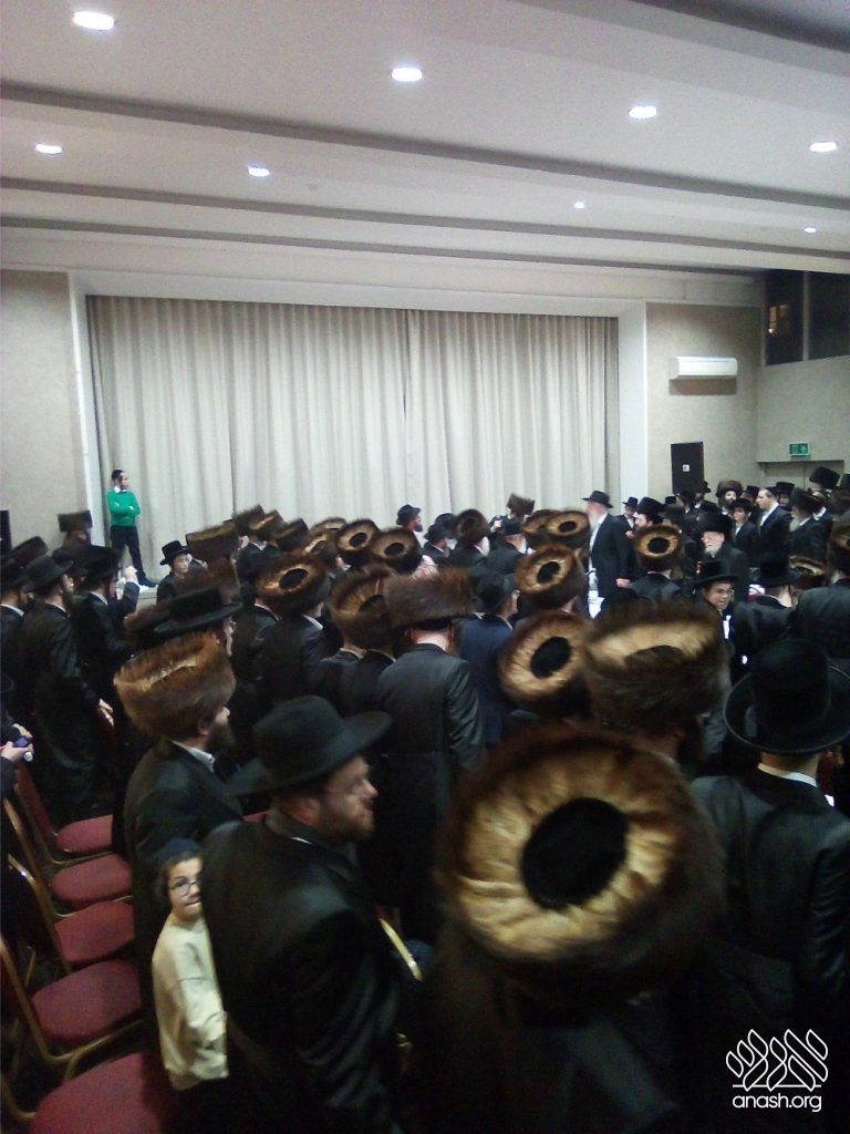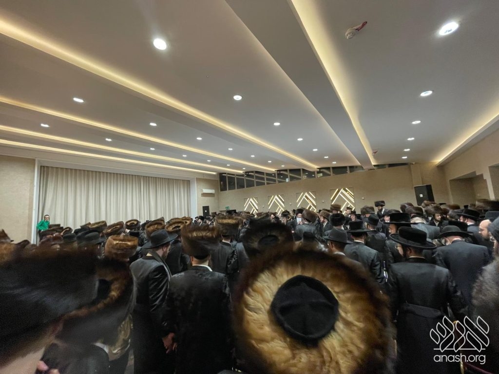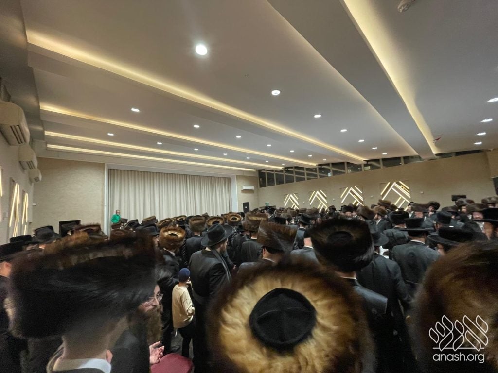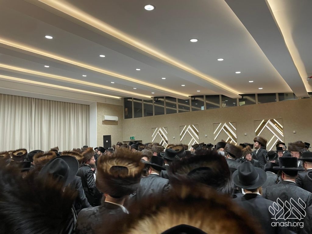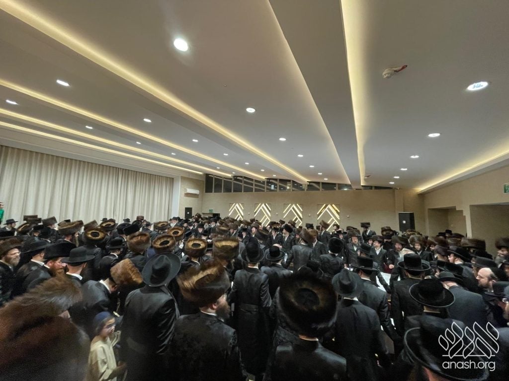 For several hours, the crowd sat and sang, led by expert baalei menagnim Rabbis Hershel Rosenbluh, Eli and Moishe Sufrin, and Dovid Vogel, accompanied by Chassidishe singer Reb Chaim Yeshaya Vail and Reb Mordche Hochberg with a musical orchestra.