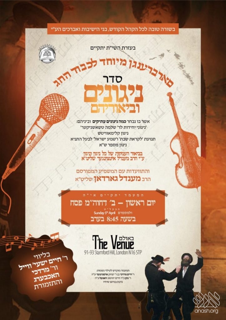 A landmark Seder Niggunim event held in London over Pesach drew hundreds of Jews from across the city’s communities for an evening of Chassidishe melodies, with each niggun presented with its history and meaning, alongside a farbrengen led by London mashpia Rabbi Mendel Gordon.