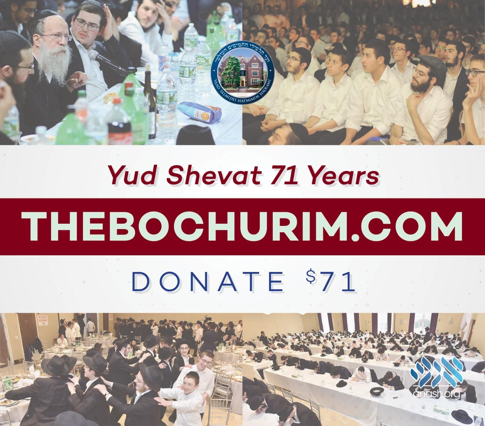 As Chasidim we invest ourselves on Yud Shevat by learning and Farbrenging, the Vaad Hatmimim is asking to take part in its Yud Shevat programing by contributing $71 for the next 71 hours to reach its goal of $180,000 in honor of 71 years to Yud Shevat.