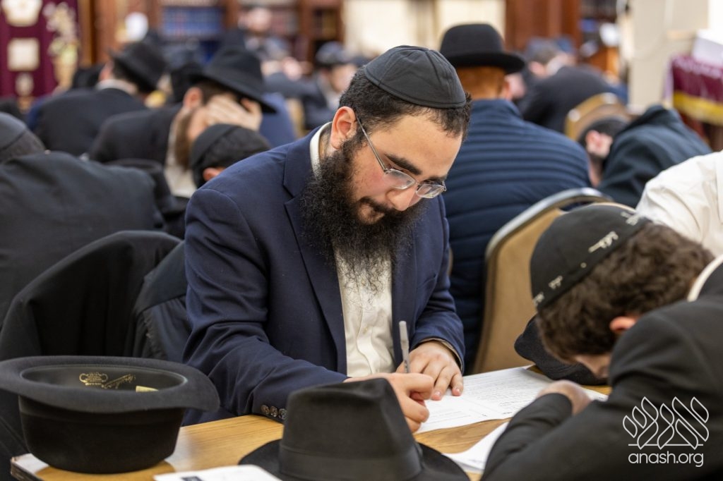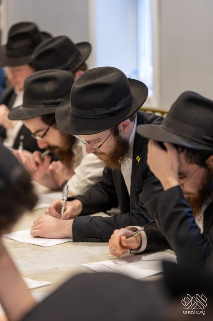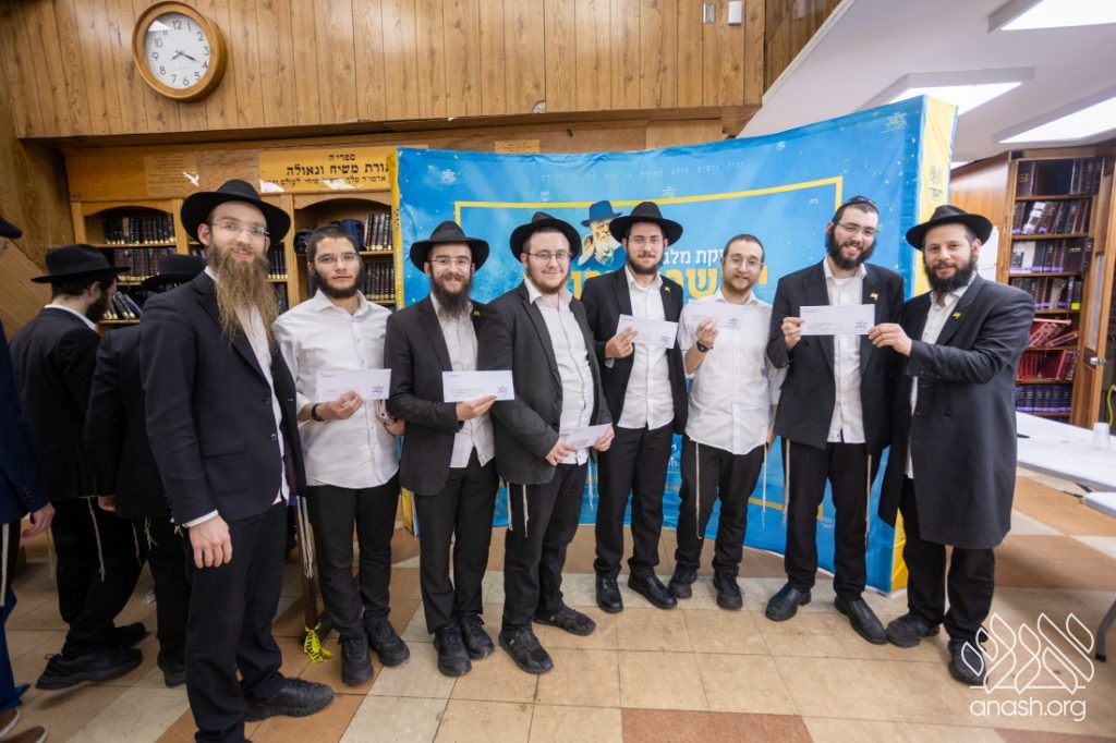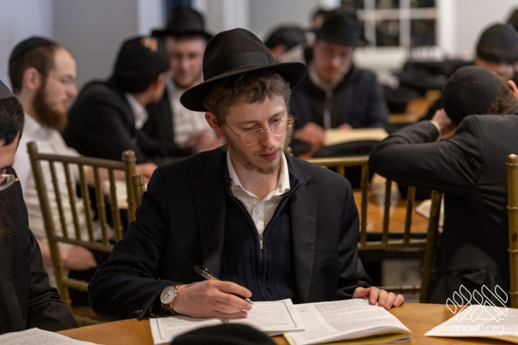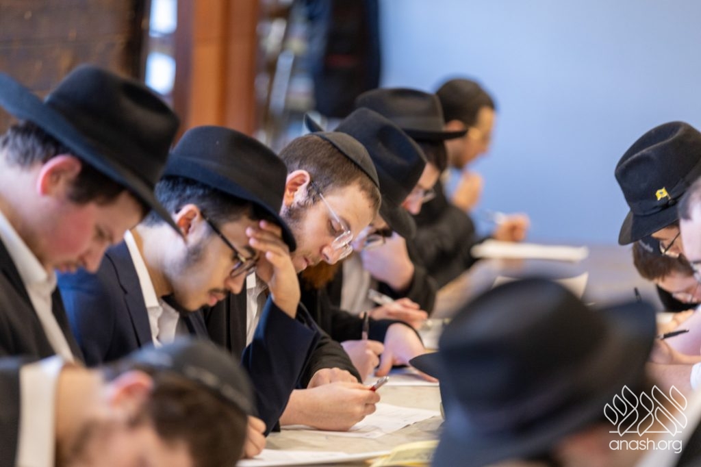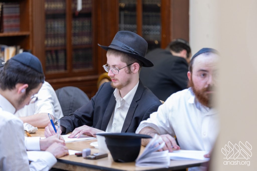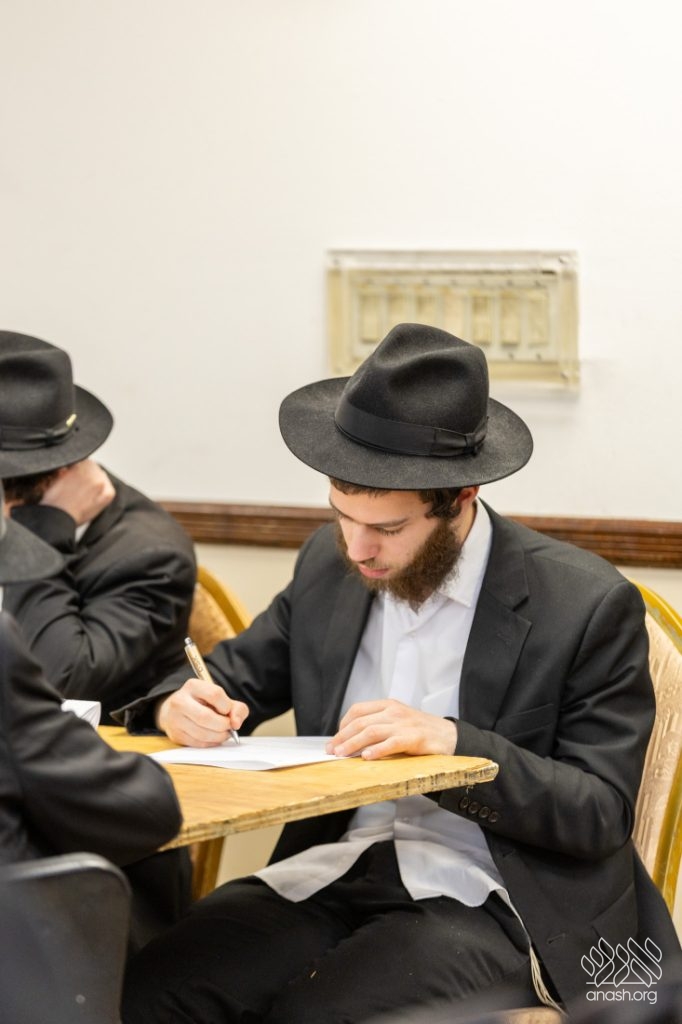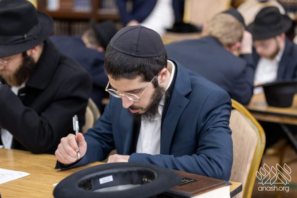After all the study and extensive effort comes the summary phase: a challenging exam, followed by the stipend distribution ceremony held in 770. Each of the bochurim walked away with a respectable check in recognition of his toil in Torah and hasmada.