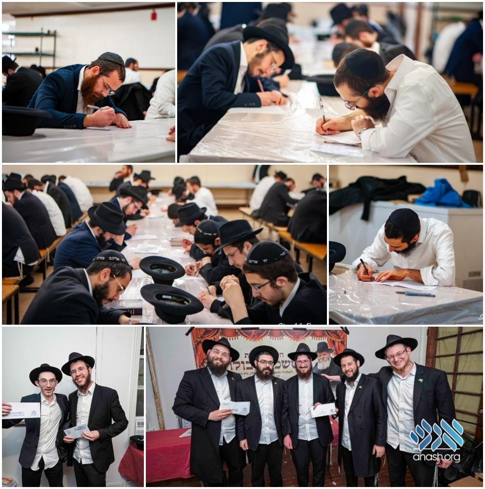Each month, participants take a test on the material they learned. Those that pass the test receive a stipend to be used for the regular expenses. The 7th test of this year took place this past week, with tens of bochurim participating.