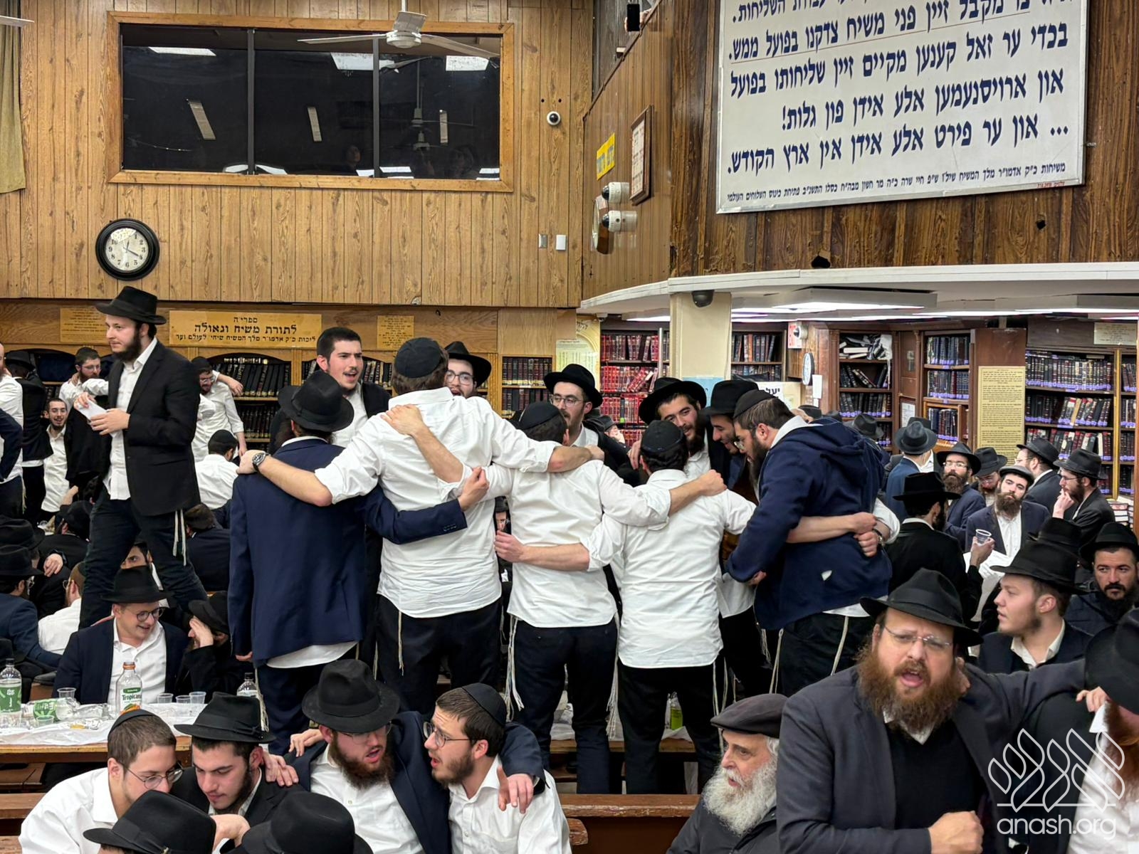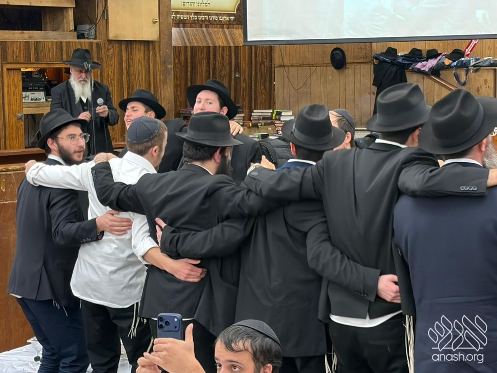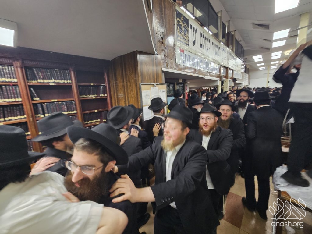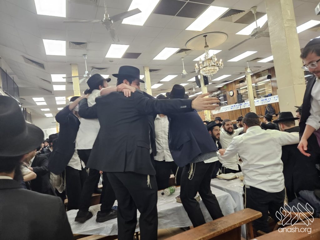 Following the farbrengen the crowd then broke out into joyous dancing celebrating the yom tov of Rosh Chodesh Kislev, the day the Rebbe left 770 for the first time after suffering a heart attack on Shmini Atzeres.