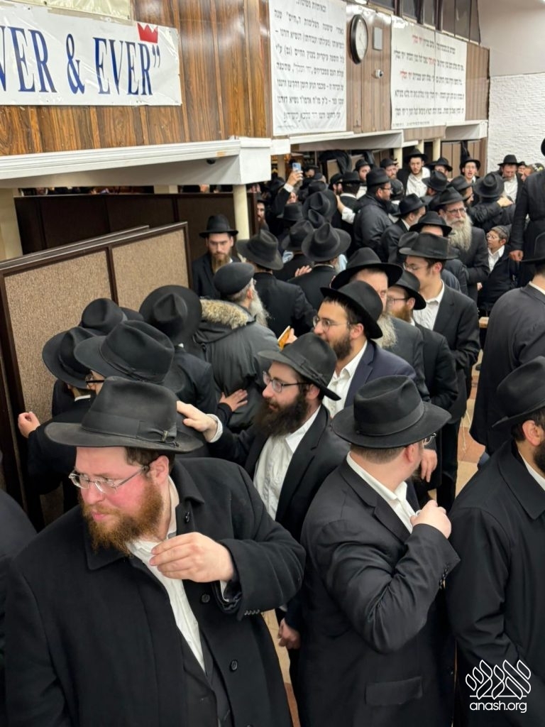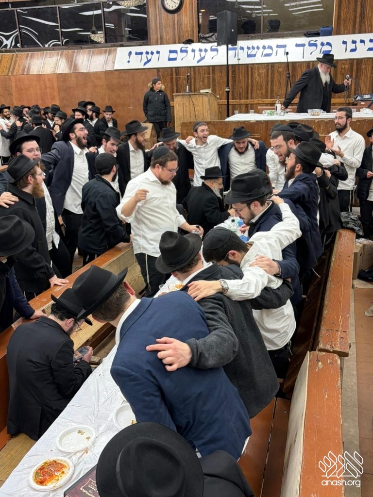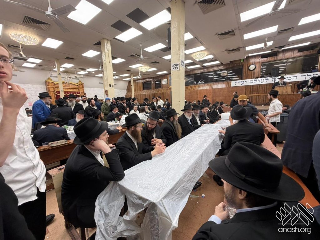 Hundreds of anash and bochurim gathered in 770 Thursday night for a farbrengen and seudas hoda’a celebrating the forty-eighth anniversary of the miracle of Rosh Chodesh Kislev.