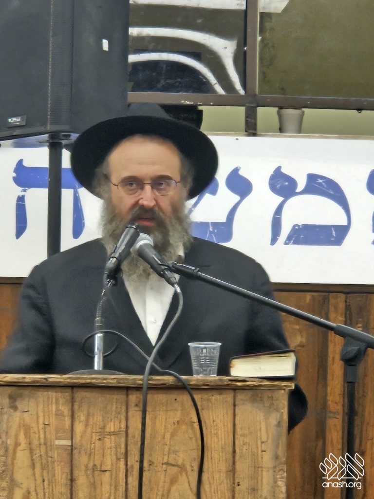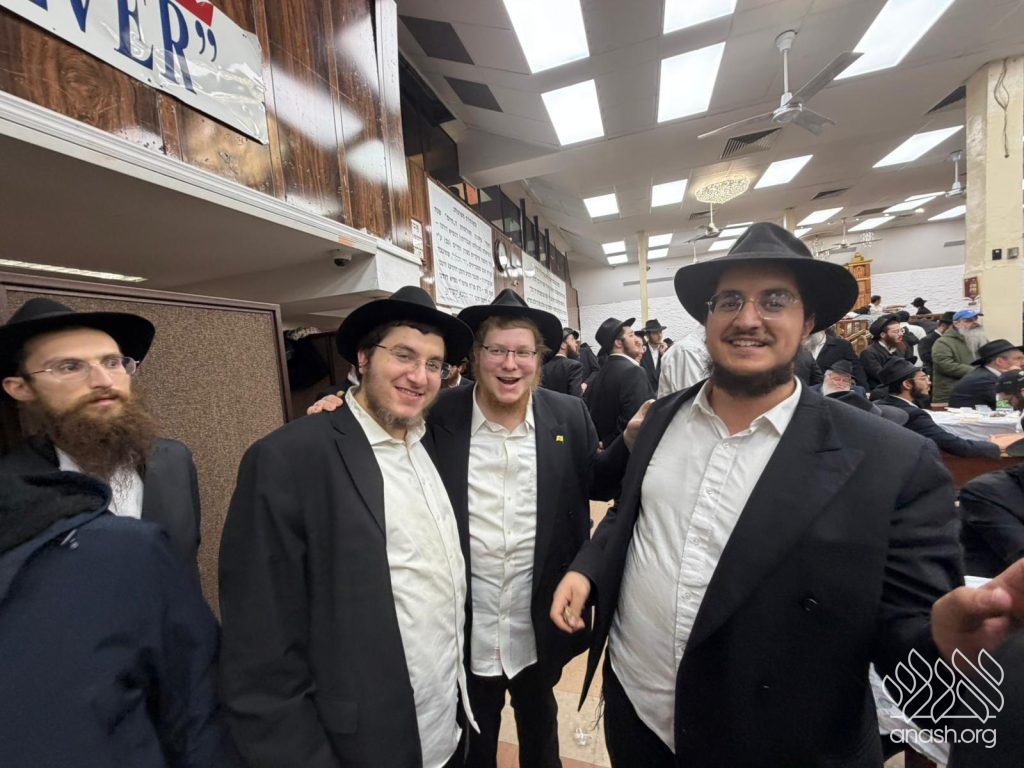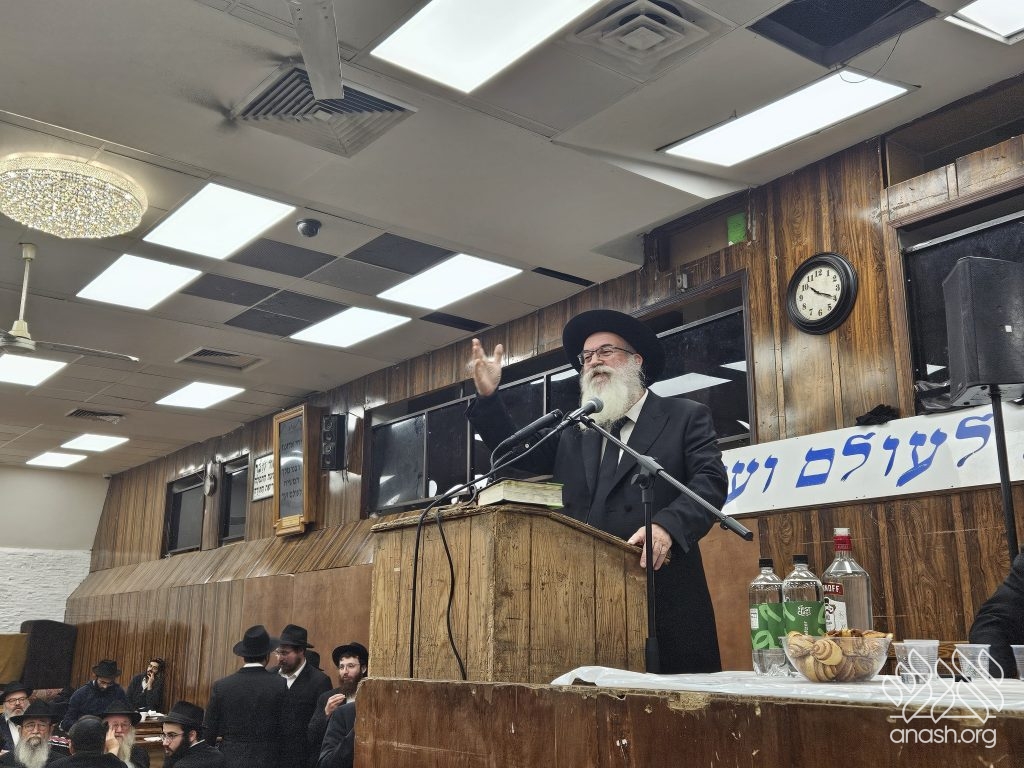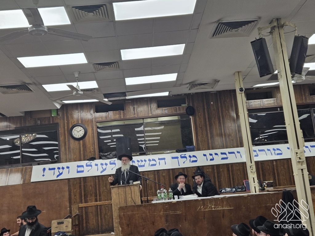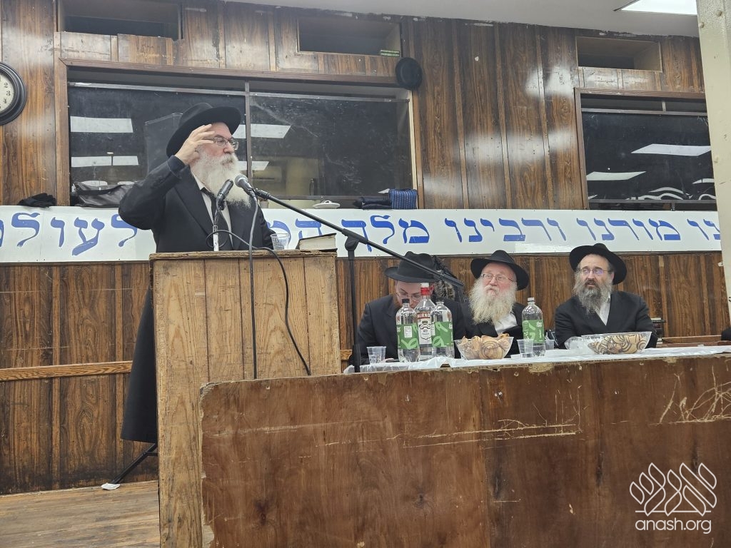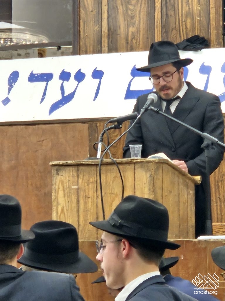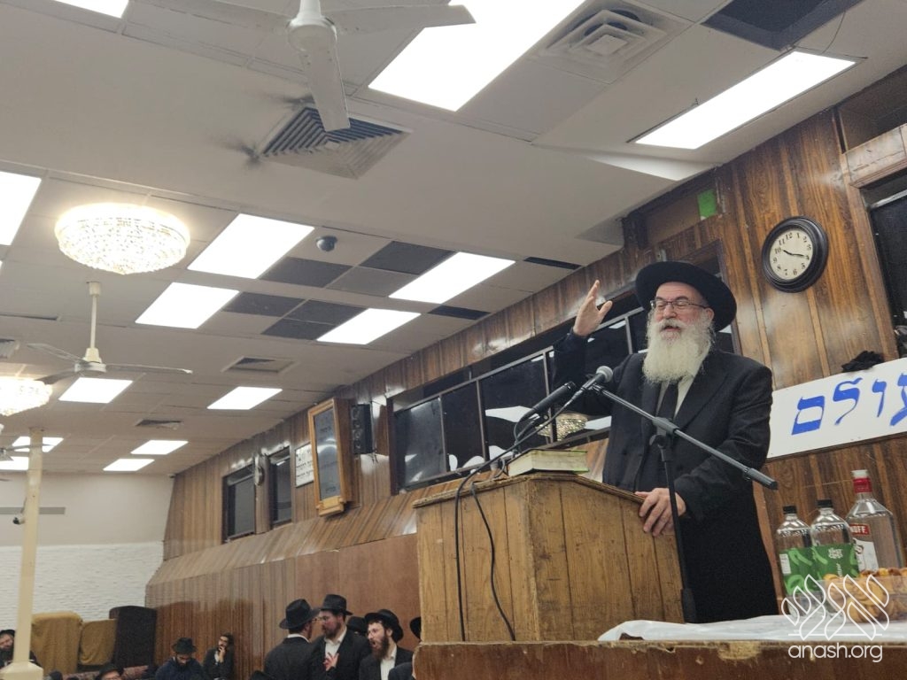 The farbrengen was addressed by Harav Yosef Yeshaya Braun, member of Crown Heights beis din; Rabbi Nachman Shapiro, mashpia in Oholei Torah zal; Rabbi Menachem Mendel Hakohen Friedman, shliach and rov in Ohr Yehuda; Rabbi Michoel Seligson; and Rabbi Yosef Nachshon from Chevron.
