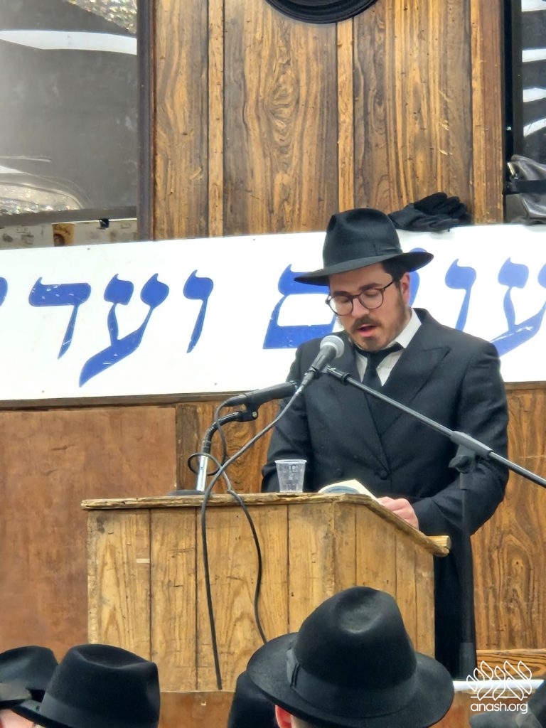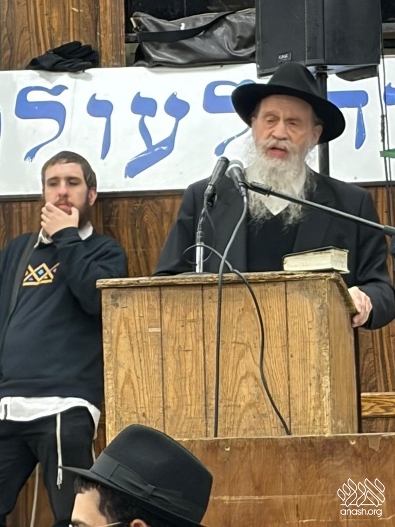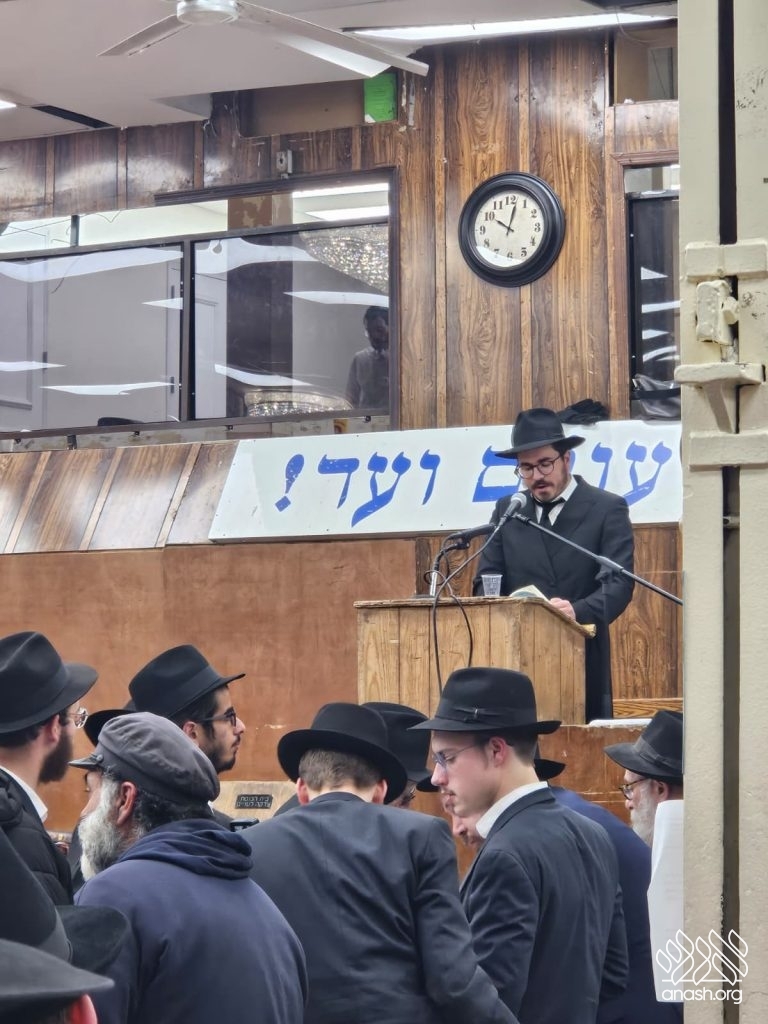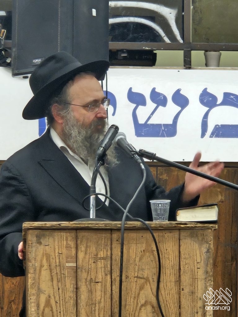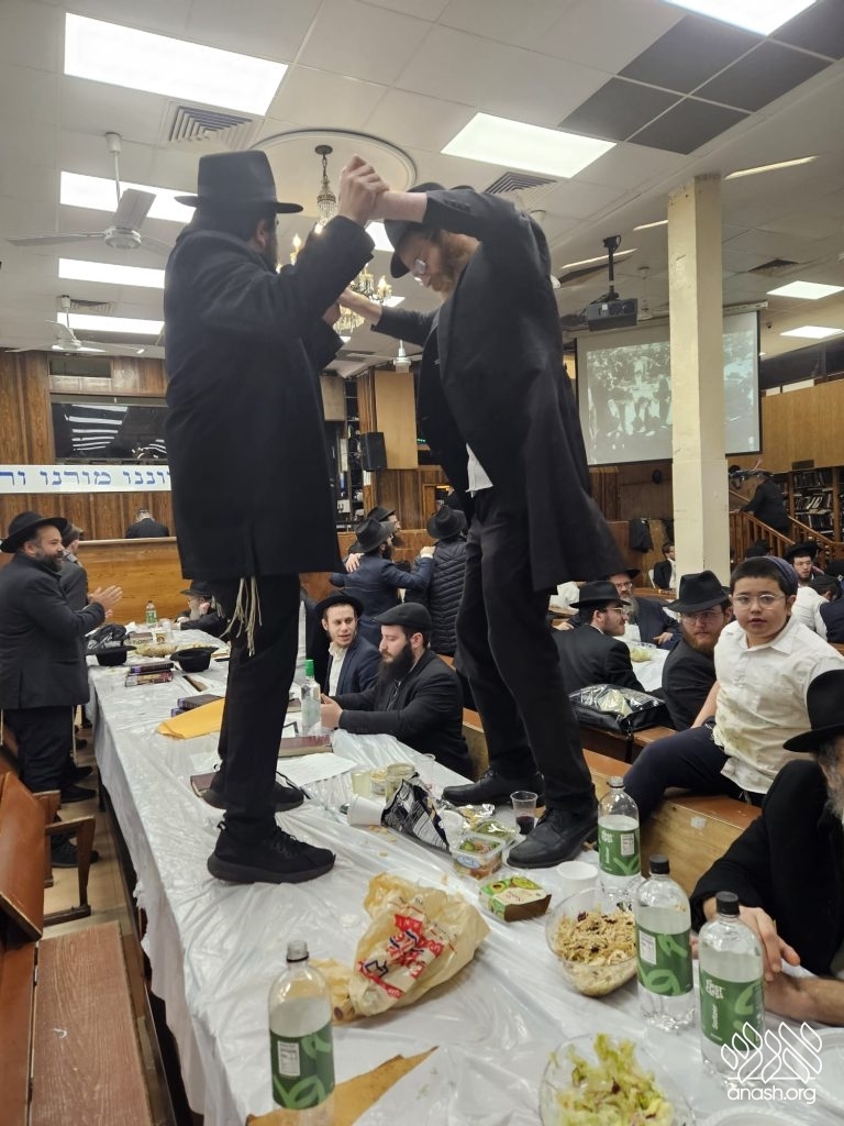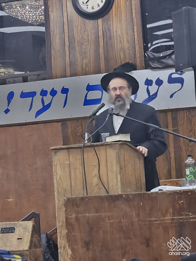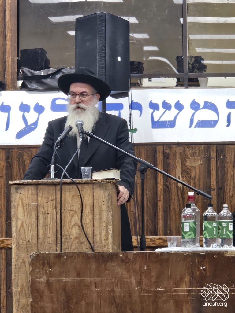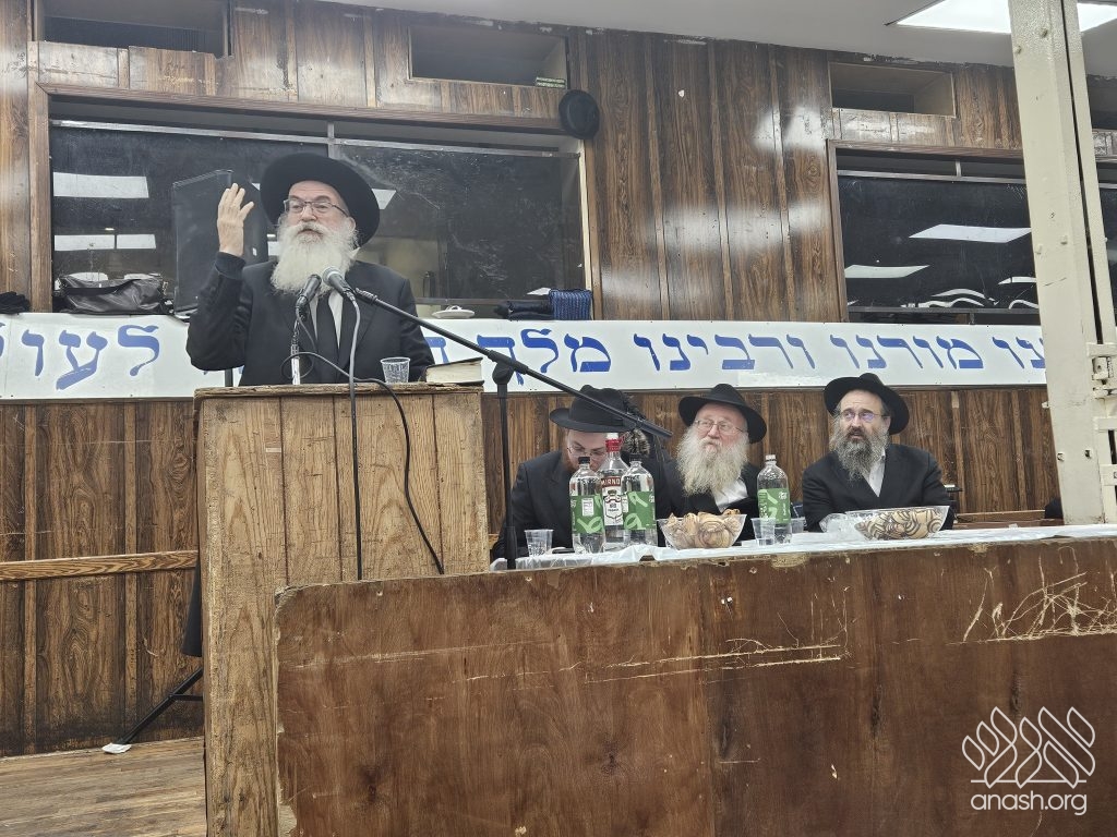 The farbrengen was addressed by Harav Yosef Yeshaya Braun, member of Crown Heights beis din; Rabbi Nachman Shapiro, mashpia in Oholei Torah zal; Rabbi Menachem Mendel Hakohen Friedman, shliach and rov in Ohr Yehuda; Rabbi Michoel Seligson; and Rabbi Yosef Nachshon from Chevron.