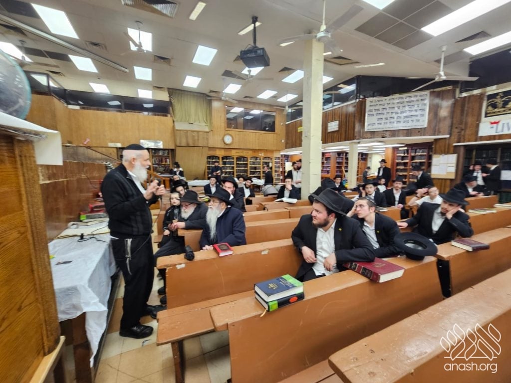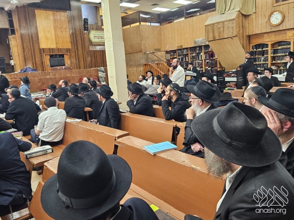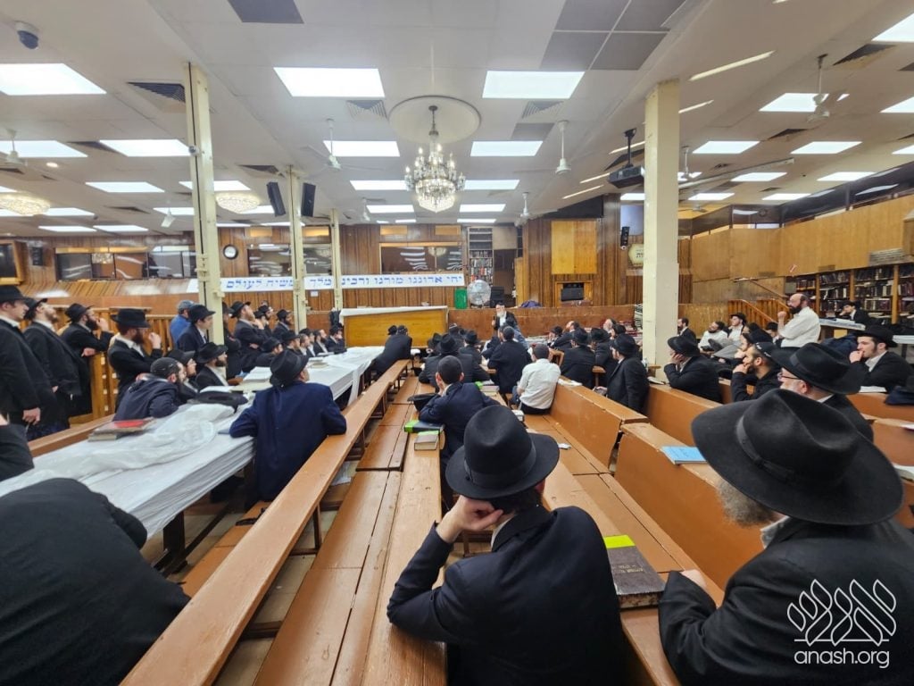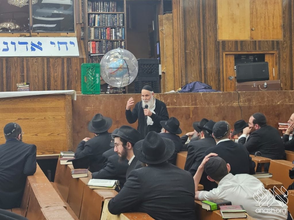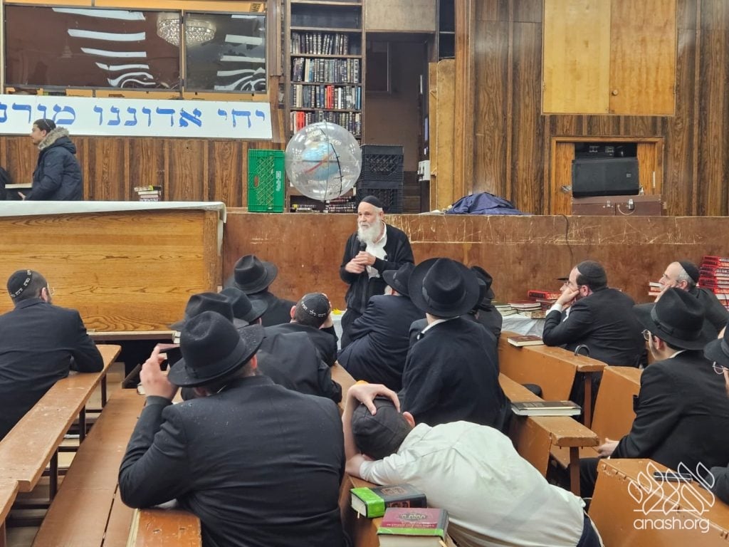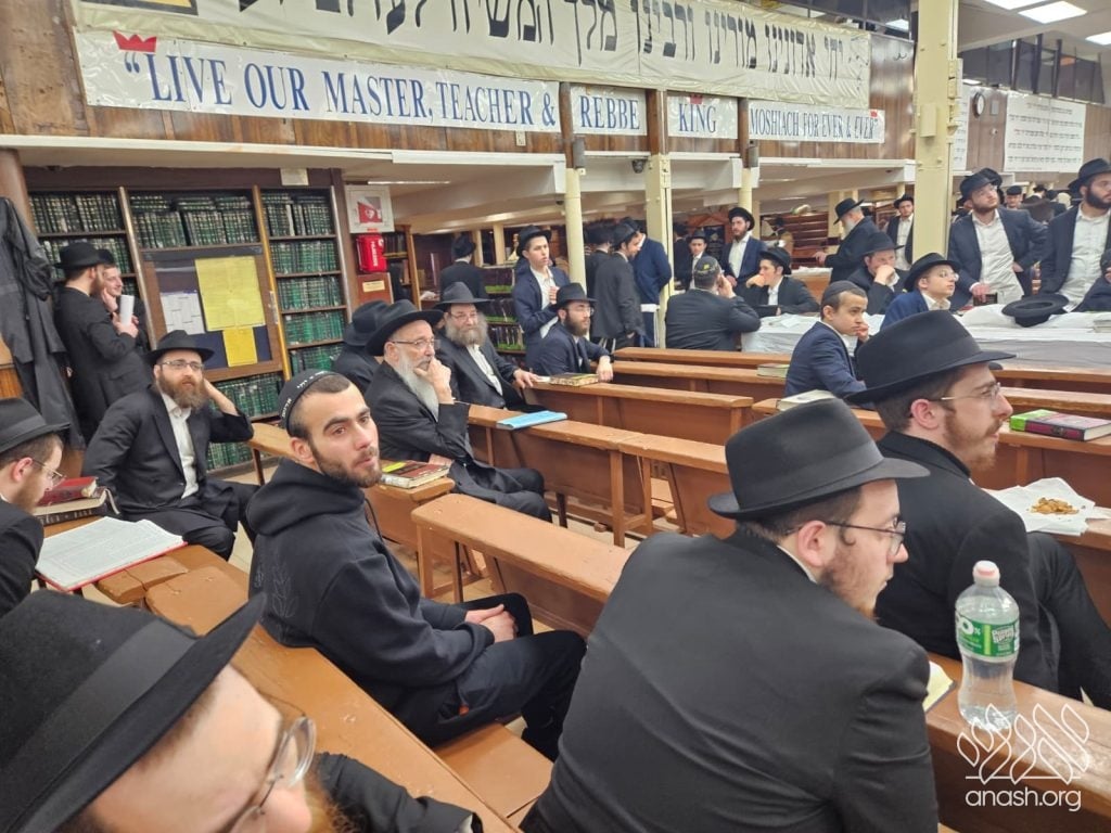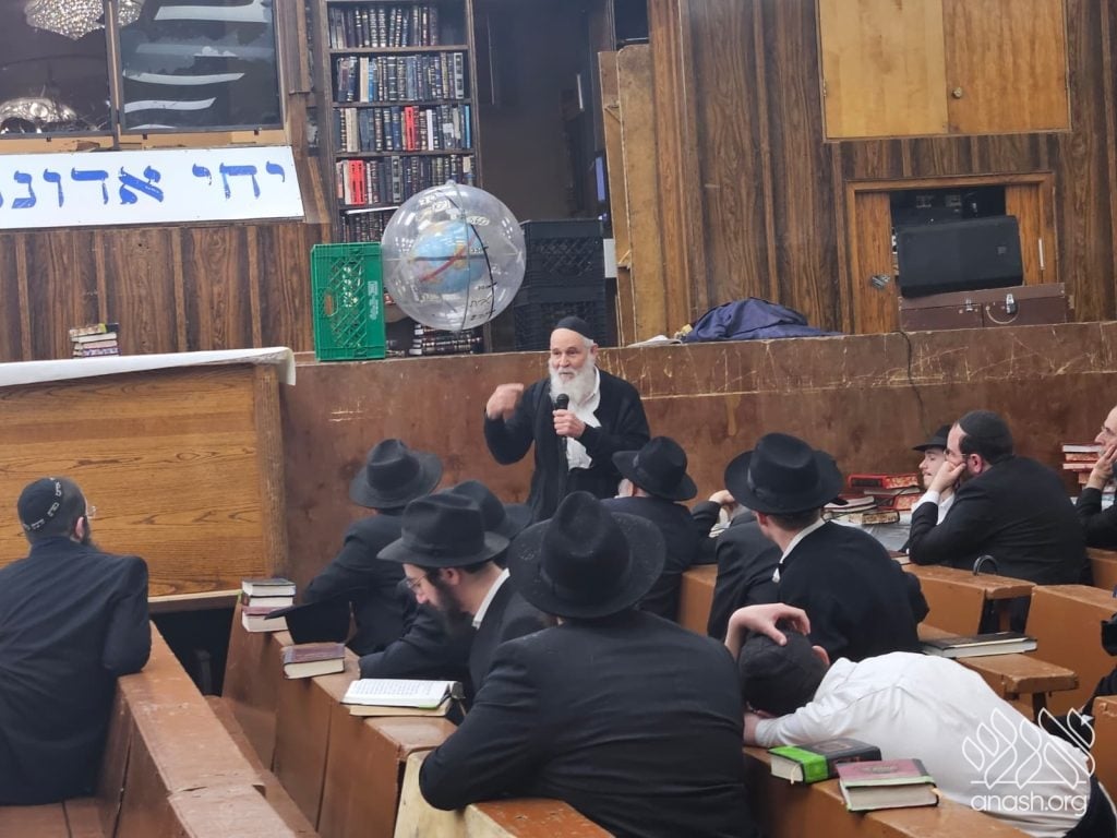 Anash and Bochurim packed the main shul of 770 to hear these complex perokim of Rambam explained by 770 gabbai and renowned Kiddush Hachodesh teacher Rabbi Yosef Losh.