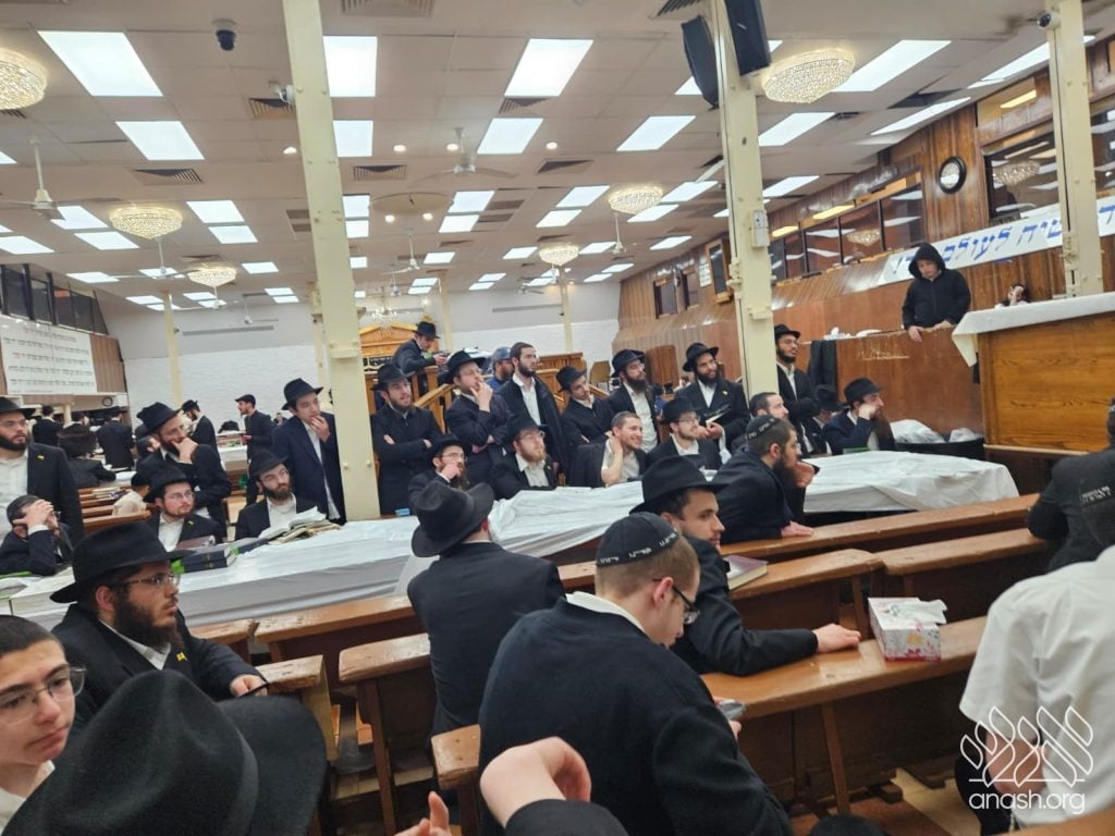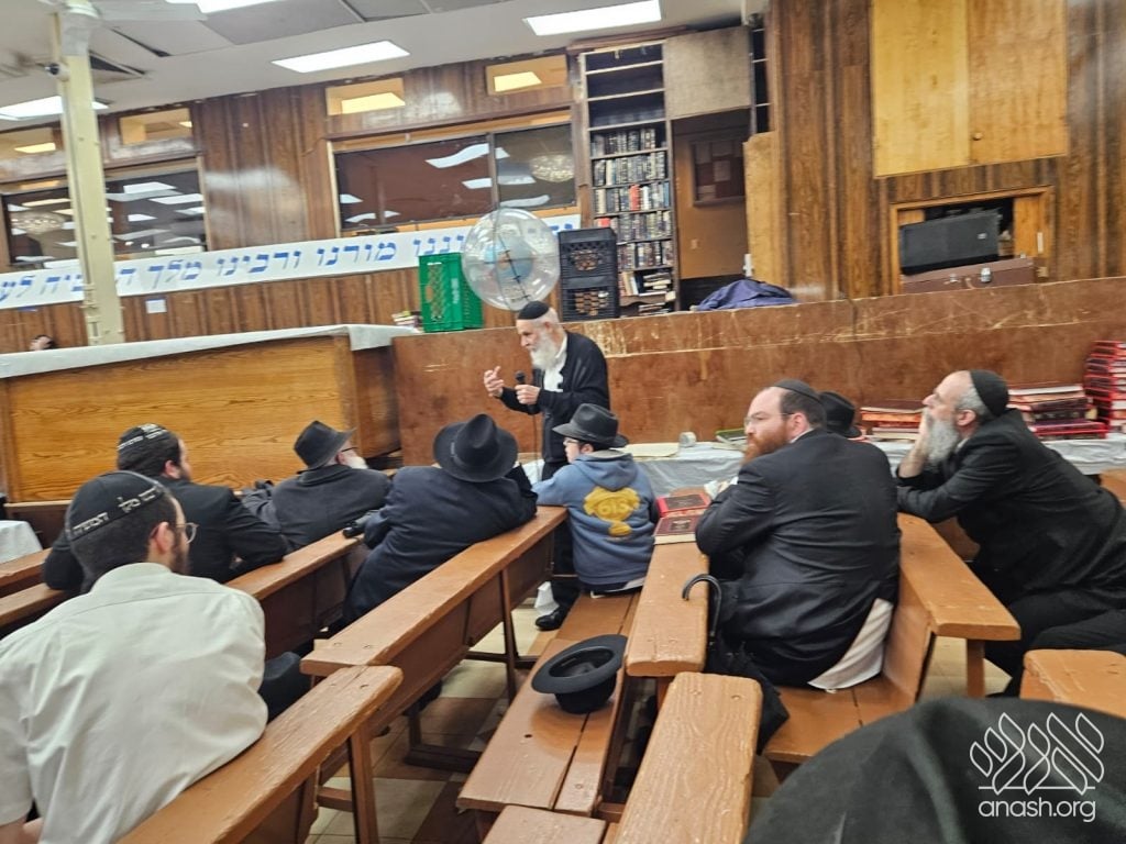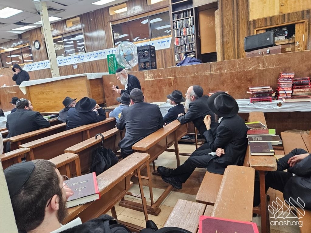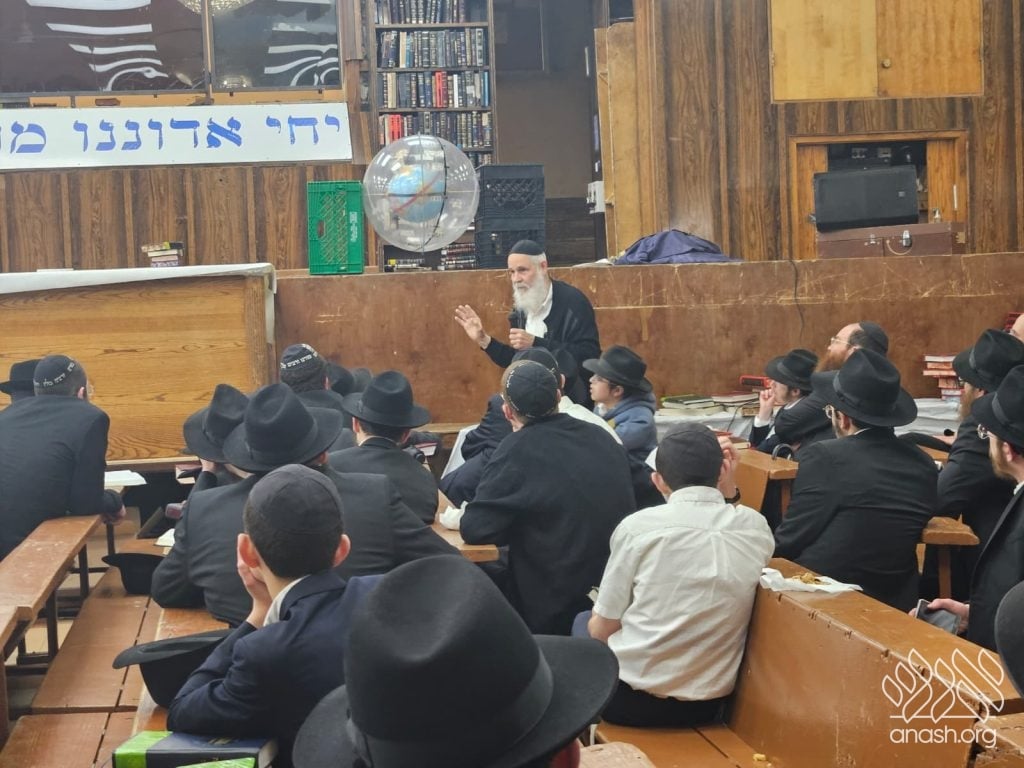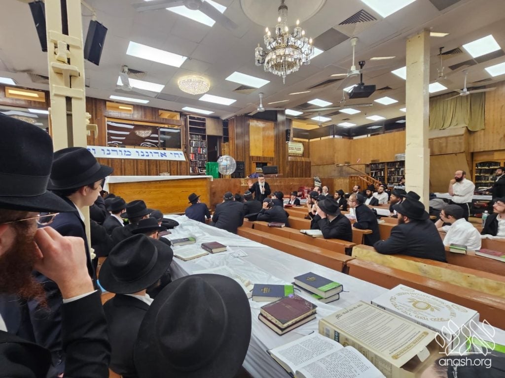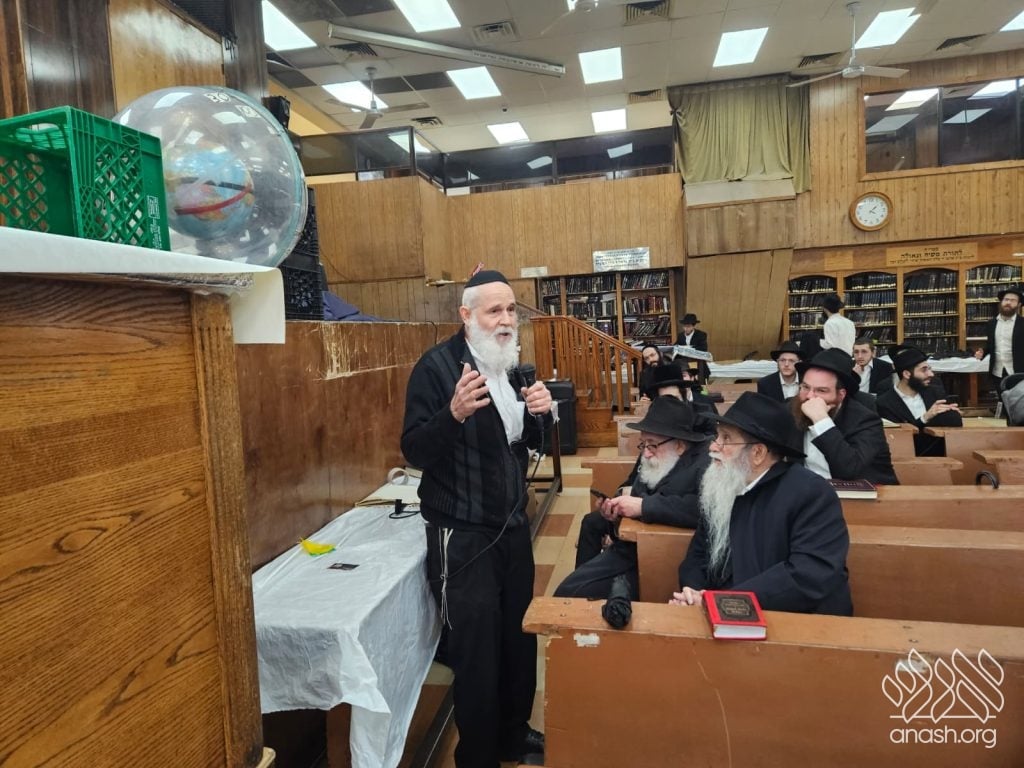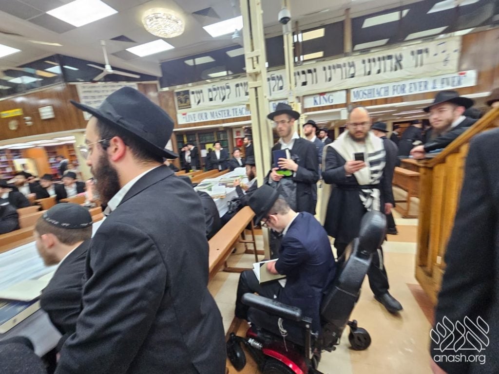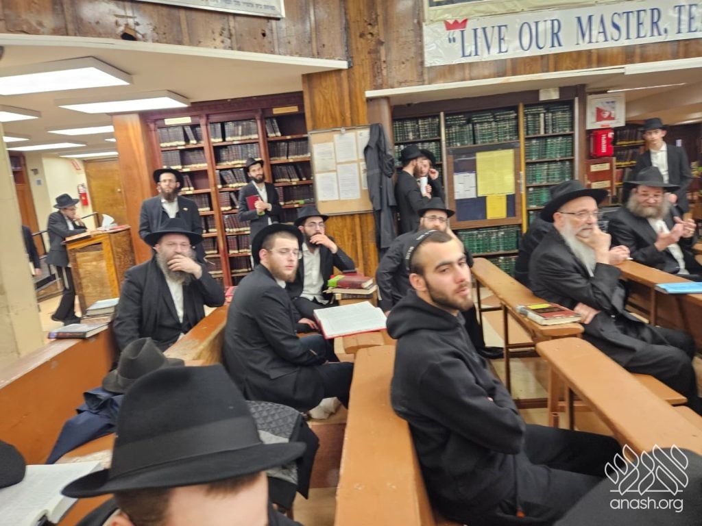 Anash and Bochurim packed the main shul of 770 to hear these complex perokim of Rambam explained by 770 gabbai and renowned Kiddush Hachodesh teacher Rabbi Yosef Losh.