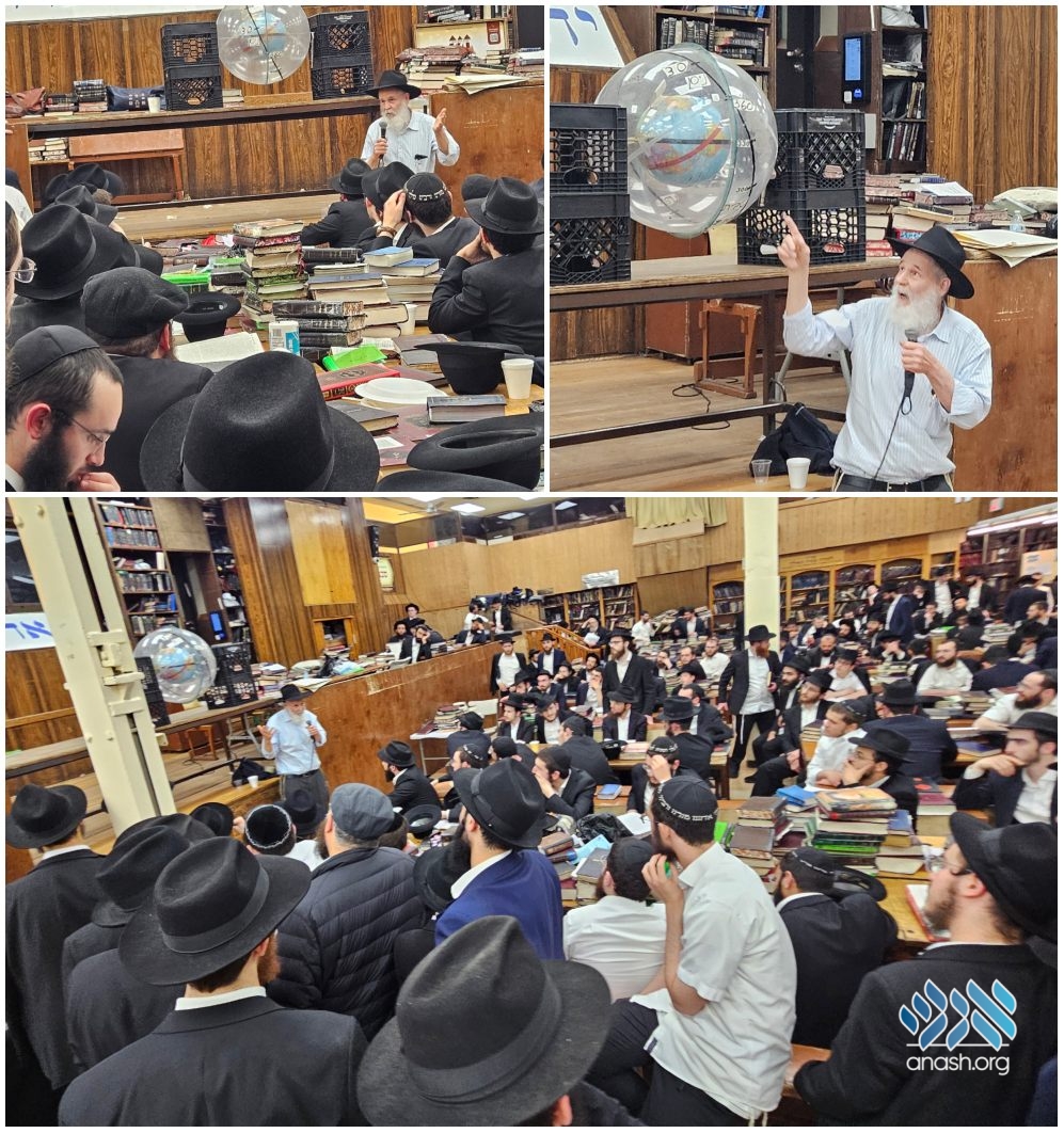 Hundreds of Anash and Bochurim packed the main shul of 770 last night to hear these complex chapters of Rambam explained by renowned Kiddush Hachodesh teacher Rabbi Yosef Losh, who also marked his 75th birthday today.