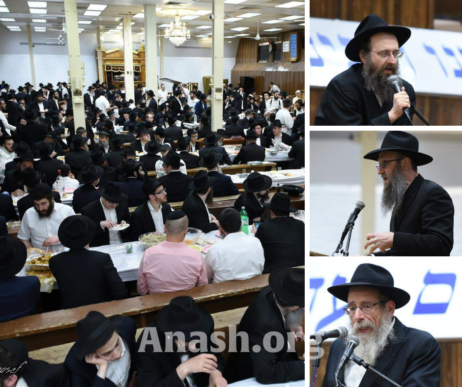 Shluchim, Anash and Bochurim gathered in 770 Motzei Shabbos for a Gimmel Tammuz Farbrengen.