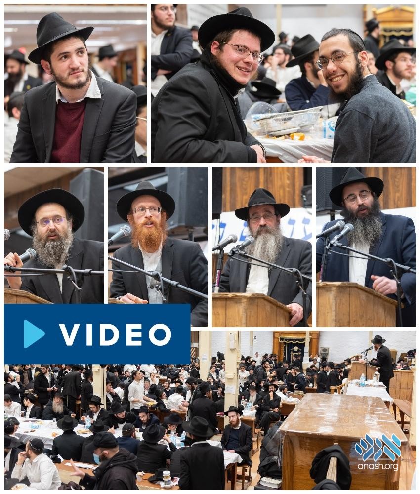 The farbrengen was addressed by Rabbi Yosef Braun of the Crown Heights Beis Din, Rabbi Pinchos Chein, shliach in Buenos Aires, Argentina, Rabbi Chaim Yisroel Wilhelm, principal in Oholei Torah, Rabbi Boruch Wilhelm shliach in Nahariya, EY, and Rabbi Dovid Nachshon. The emcee was Rabbi Nissin Lagziel, mashpia in Mesivta Oholei Torah.