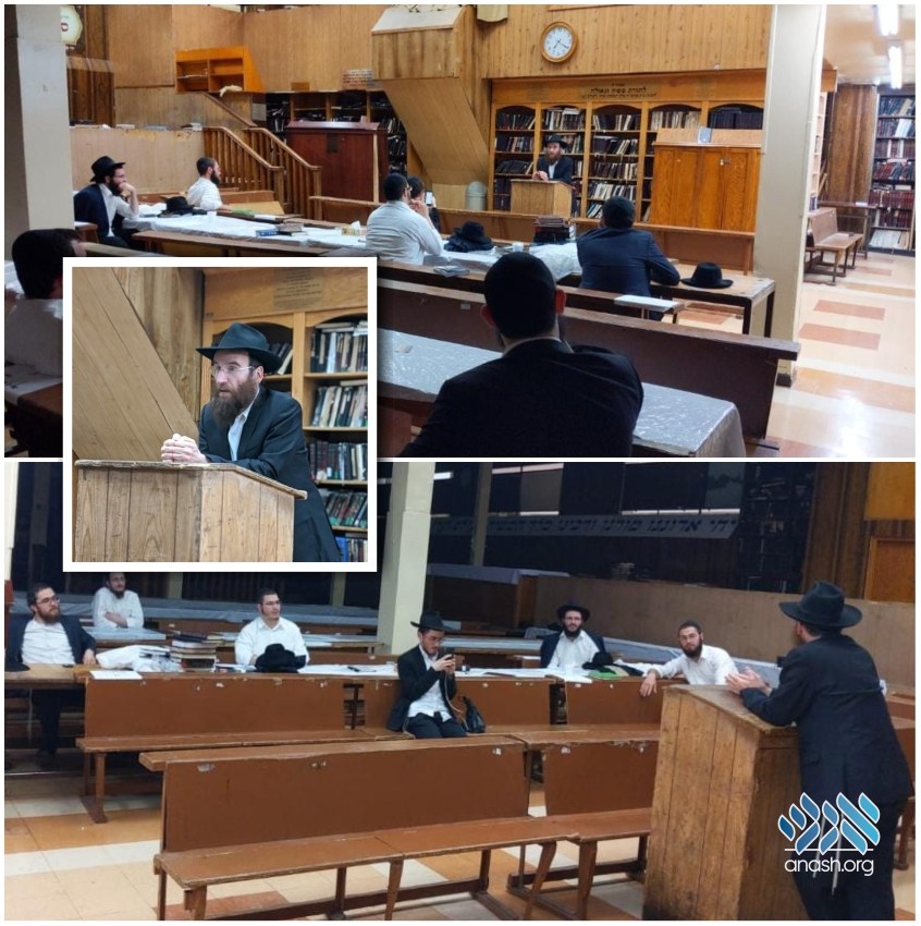 The central Moshiach shiur, finally back in 770, was given by Rabbi Yisroel Shimon Kalmenson of Lahak Hanachos, who recently recovered from cornavirus.