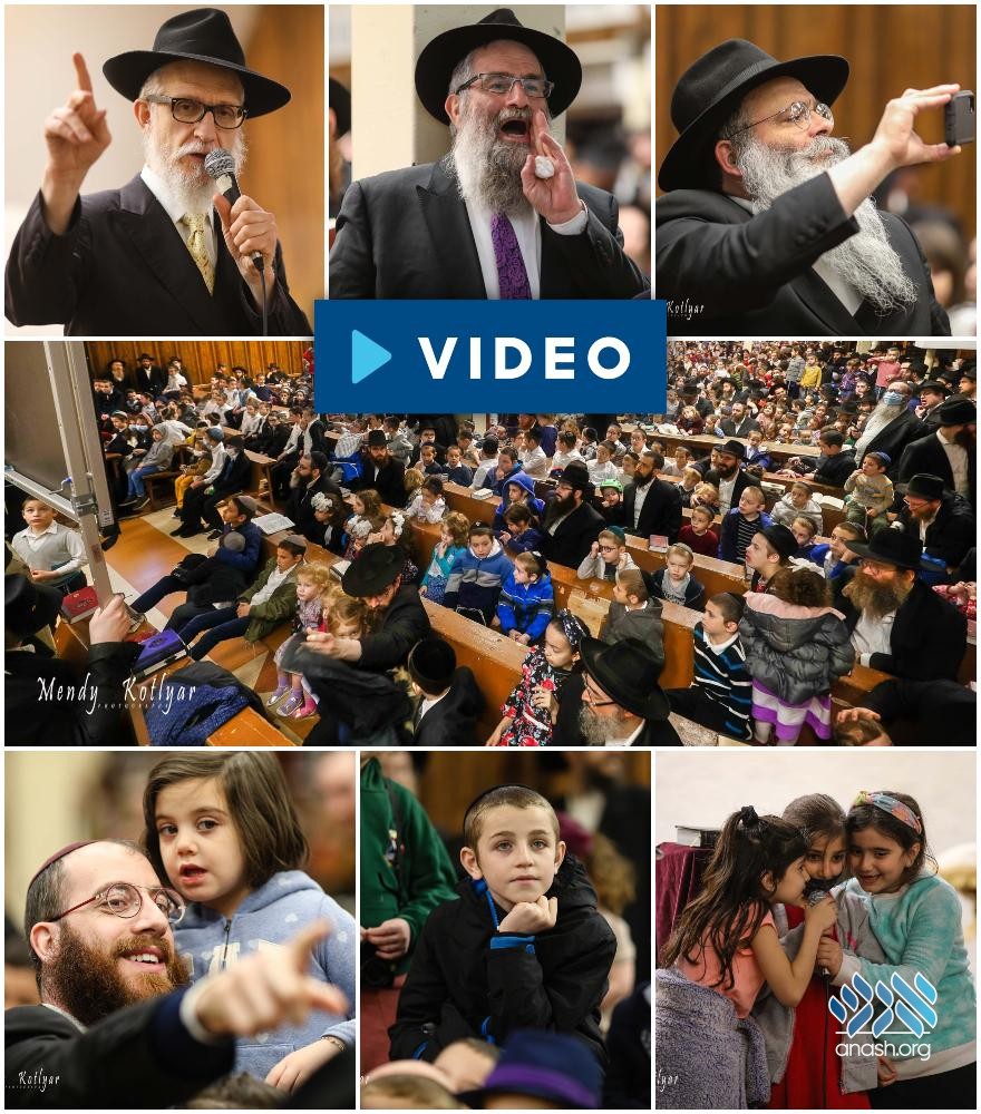 Hundreds of Crown Heights children gathered in 770 and hundreds of other children from around the world joined the live broadcast on Anash.org for a Chol Hamoed Pesach rally organized by NCJFE and featuring a live performance by ventriloquist Chuck Fields.