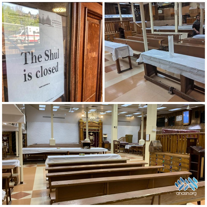 Preparations were made in 770 for the first minyan to take place inside the shul after many weeks of being closed.
