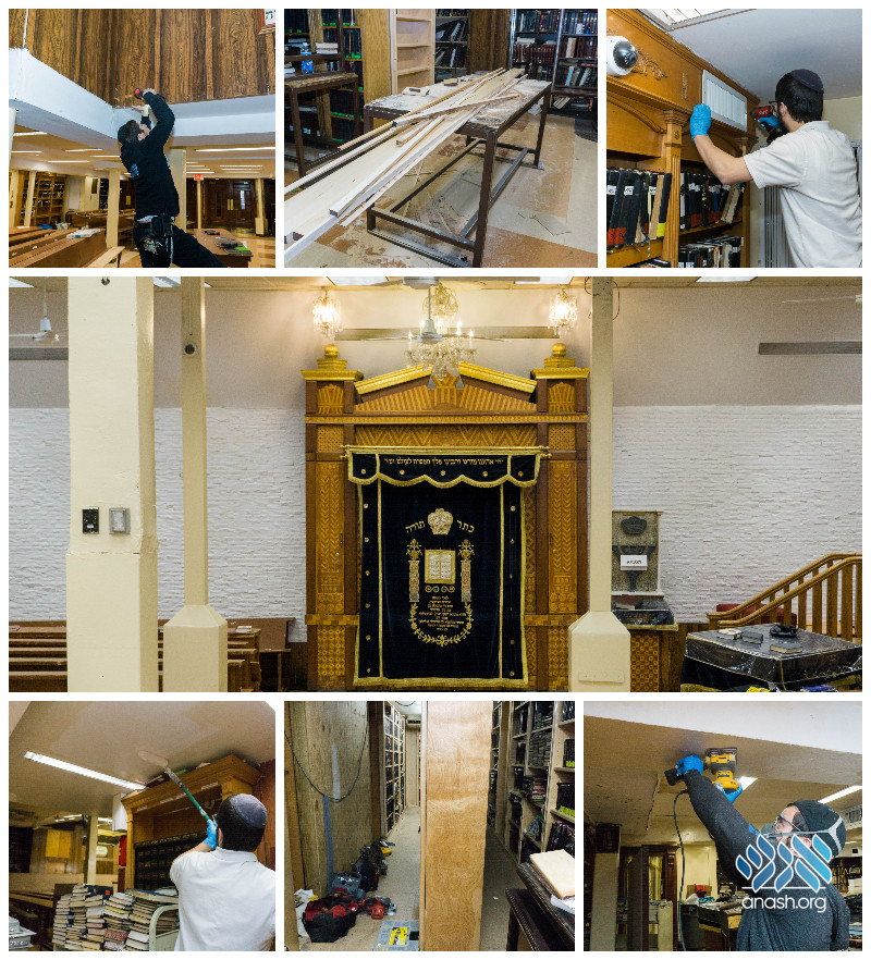 During the interim period when 770 is closed to the public, the gabboim are preparing and improving the shul for the time when it will reopen to all.
