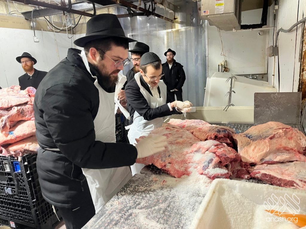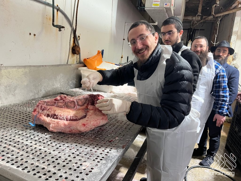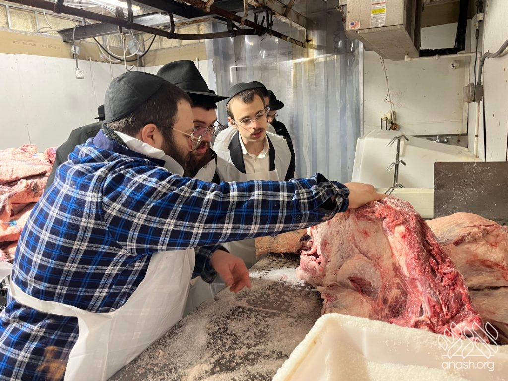 Hilchos Melichah went from theory to practice for bochurim in 770’s Semicha program when they joined a hands-on demonstration of the melichah process for cattle, seeing firsthand how the halachos are carried out step by step under expert guidance.