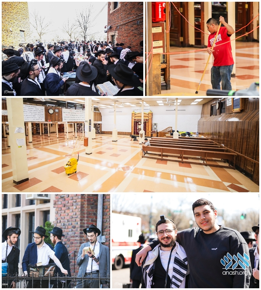 The main shul at 770 Eastern Parkway was closed off on Tuesday evening to begin a deep clean for Pesach; Minyonim are being held in the upstairs zal and in the chotzer.