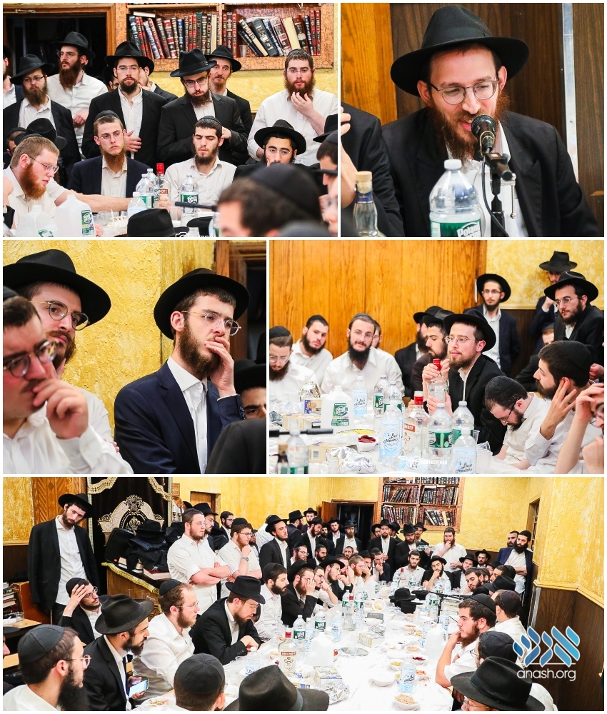 Bochurim of the Central Tomchei Temimim at 770 marked the auspicious day of Chai Elul with a farbrengen led by mashpia Rabbi Shmuly Avtzon.