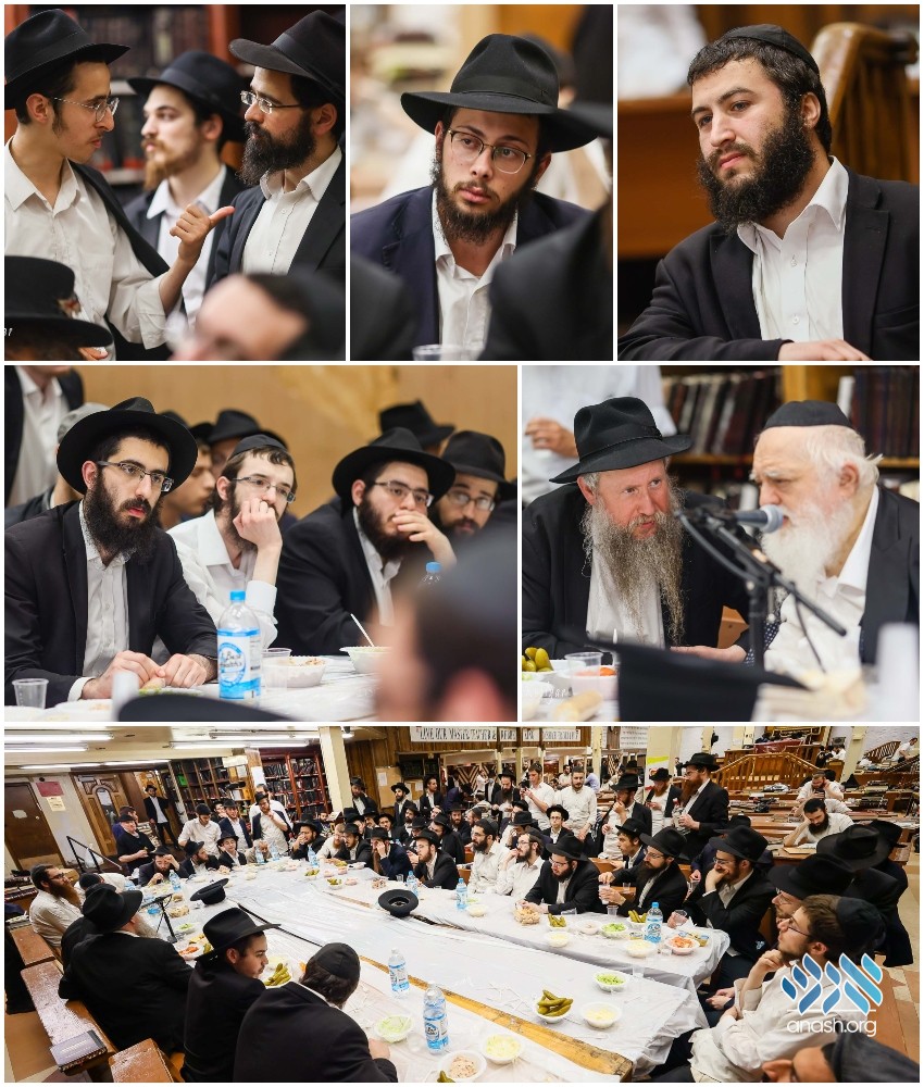 Leading the farbrengen were mashpi’im Rabbi Shlomo Zarchi and Rabbi Kuti Feldman and other members of the hanhala of the 770 Yeshiva.