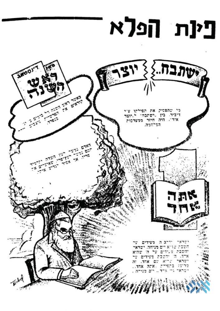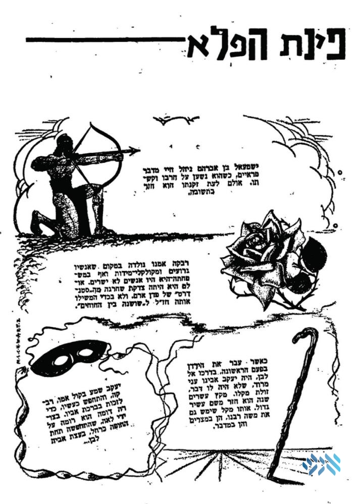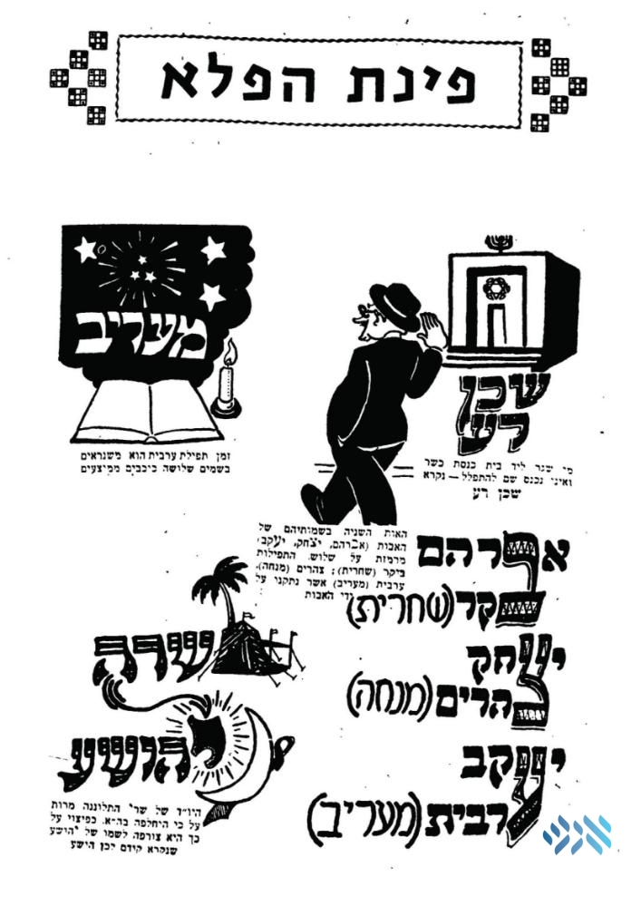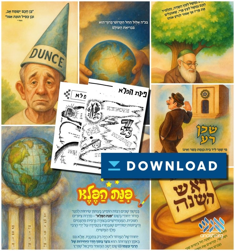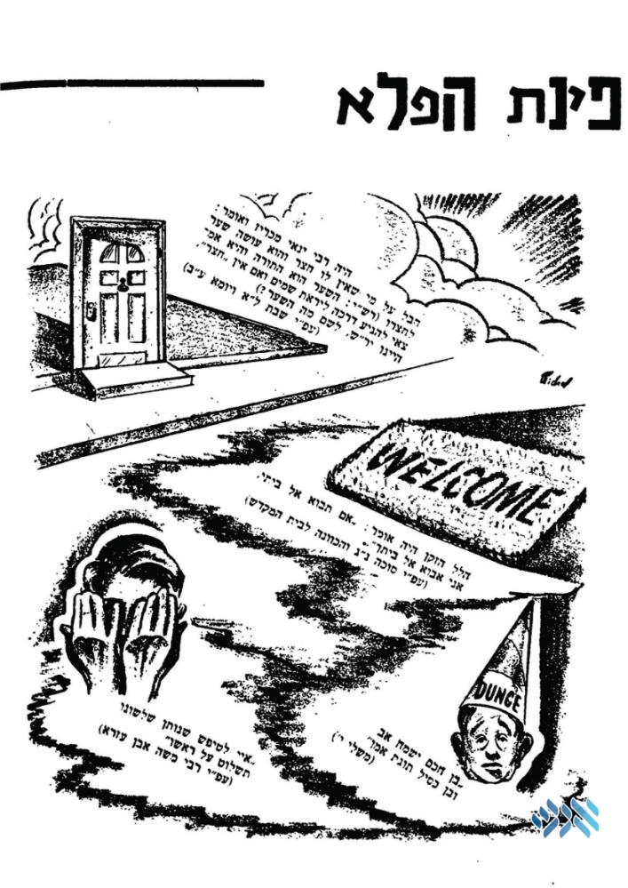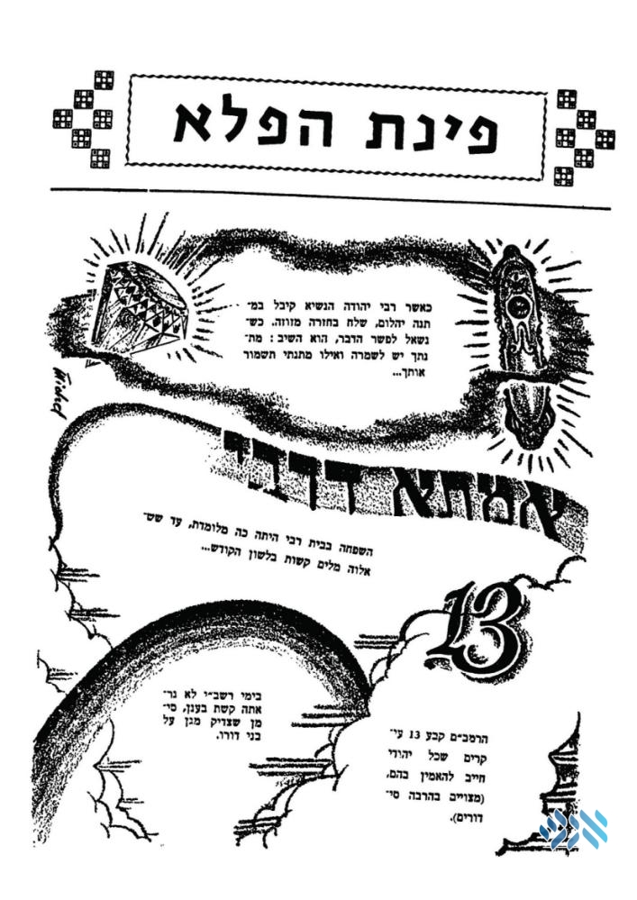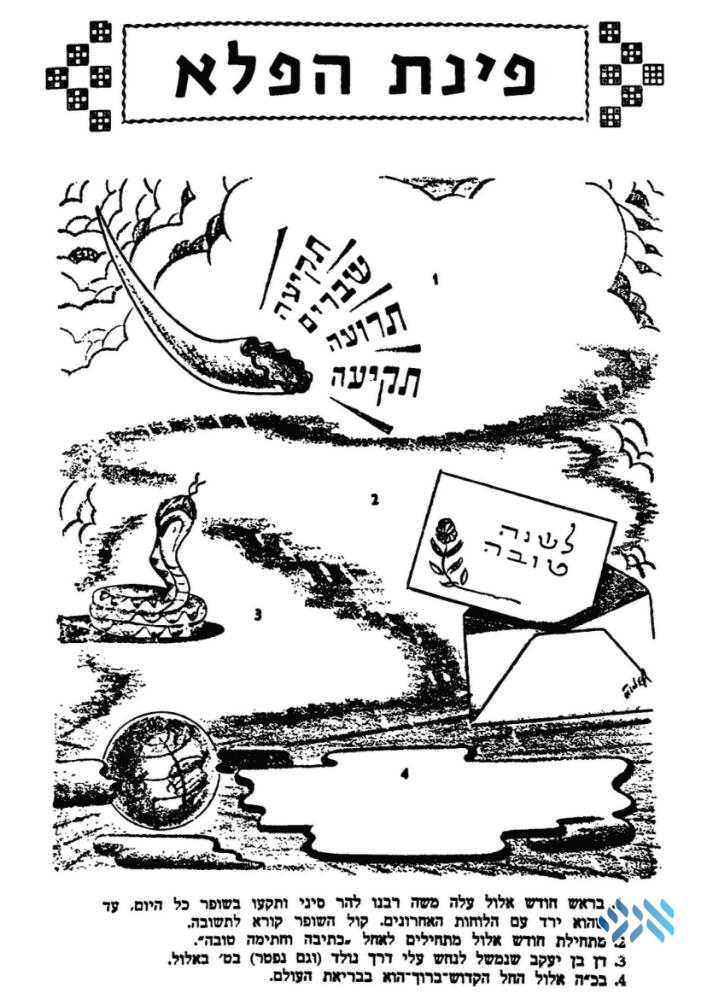 Among the projects initiated by the Rebbe was the launch of the monthly magazine talks and tales (in Yiddish, Shmuessen mit Kinder un Yugend). In its early years, nearly every issue introduced a new feature, and in Teves 5705, a new column titled Vunder Vinkel appeared, under the bilingual headline Mah Nishtanah – Curiosity Corner, illustrated by Michel Schwartz.