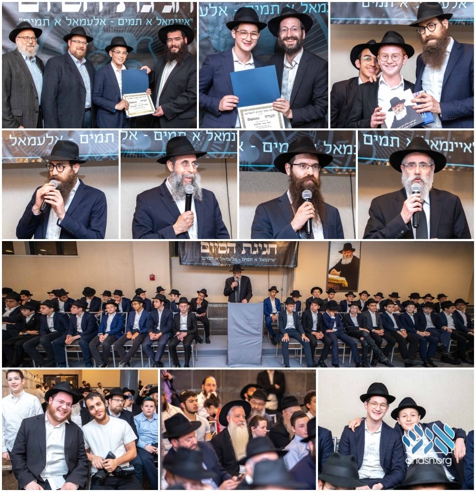 Speaking at the graduation were teacher Rabbi Yisroel Dovid Shmueli, 7th-8th grade principal Rabbi Yosef Wolf, principal Rabbi Yosef Simpson, graduating students, and parents.