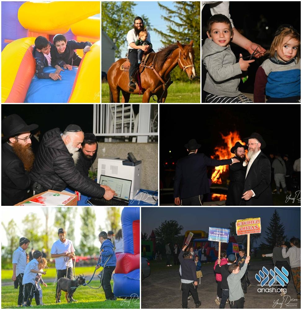 The yearly Lag B’omer celebration at Yeshivas Tomchei Tmimim of Napierville was an extra-special one this year, with an upshernish and Tanya printing joining the regular carnival and bonfire.