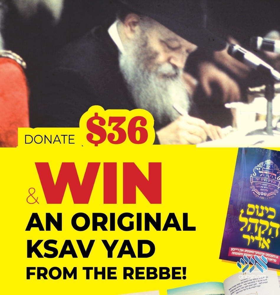 All supporters of $36 and up have a unique and rare opportunity: to enter a raffle on an original Ksav Yad of the Rebbe.