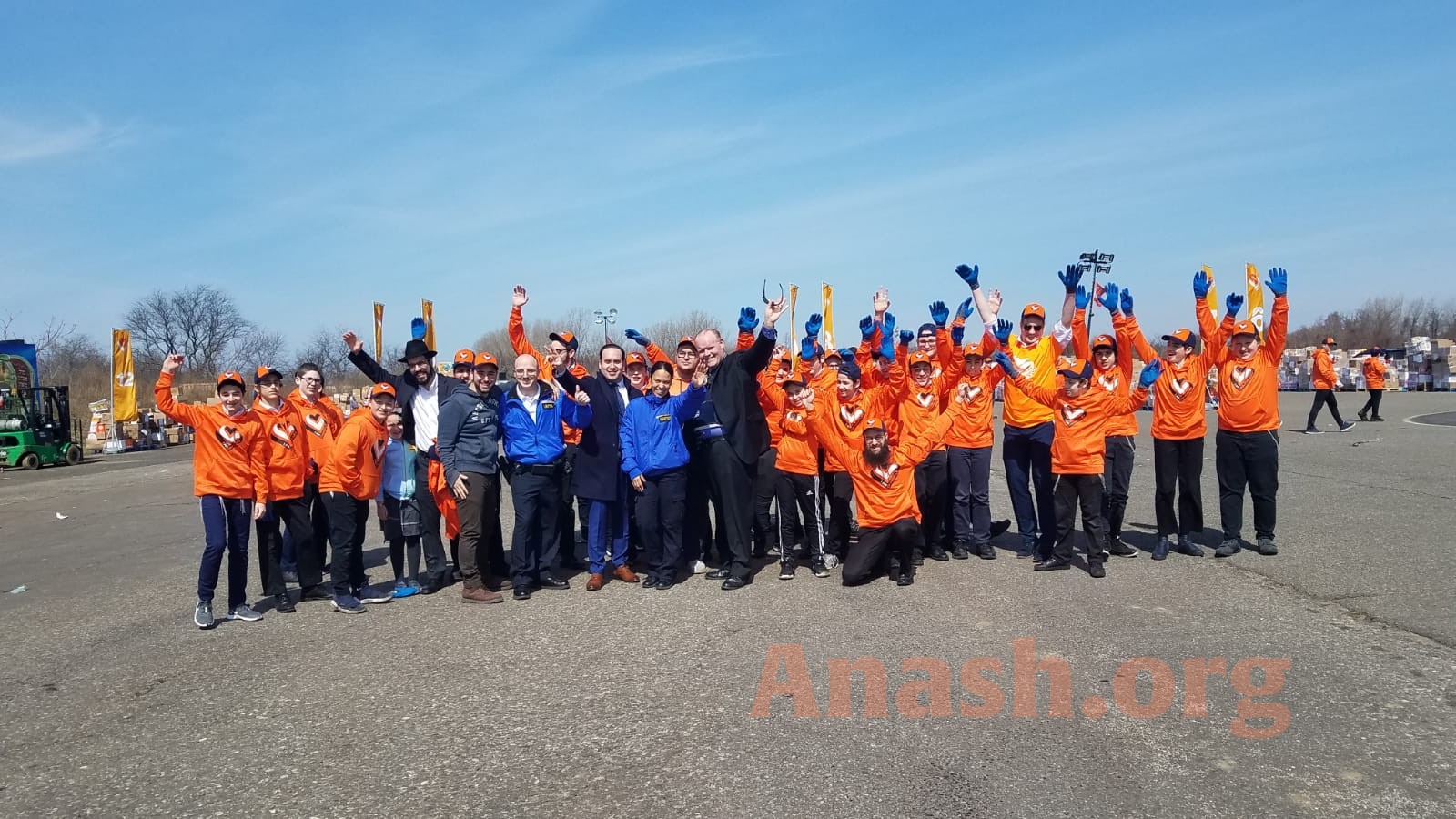 Oholei Torah students volunteer at the Chasdei Lev distribution in a display of appreciation for school Rebbis.